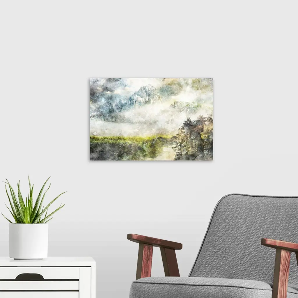 Stream By The Mountains wall art for home and office decor. Discover canvas art prints, photos, mural, big canvas art and framed wall art in GreatBigCanvas.com's varied collections.
