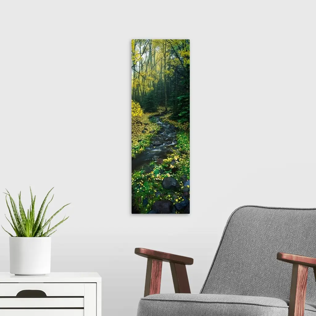 Stream flowing through forest wall art for home and office decor. Discover canvas art prints, photos, mural, big canvas art and framed wall art in GreatBigCanvas.com's varied collections.