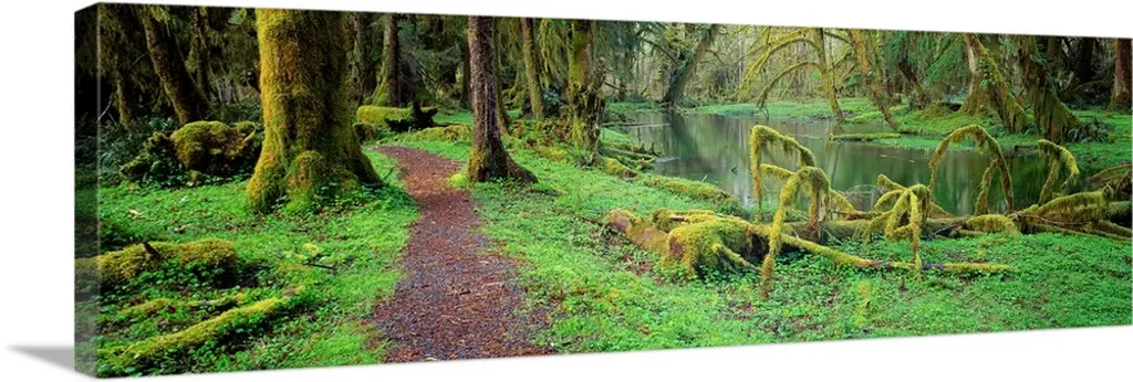 Stream flowing through Hoh Rainforest, Olympic National Park, Washington State wall art for home and office decor. Discover canvas art prints, photos, mural, big canvas art and framed wall art in GreatBigCanvas.com's varied collections.