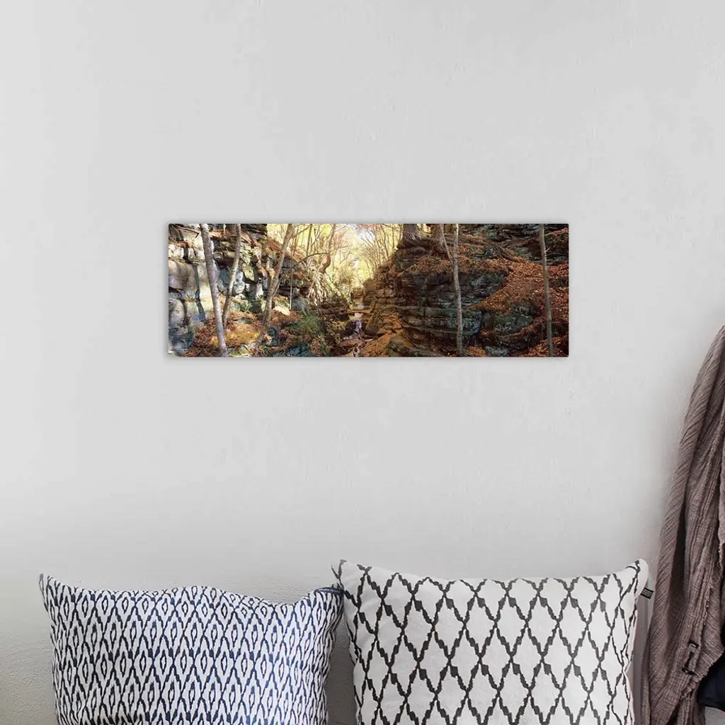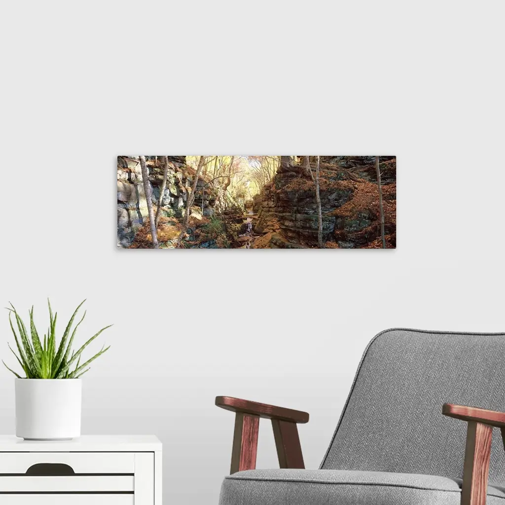 Stream passing through a forest, Pewits Nest, Pewits Nest State Natural Area, Sauk County, Wisconsin, wall art for home and office decor. Discover canvas art prints, photos, mural, big canvas art and framed wall art in GreatBigCanvas.com's varied collections.