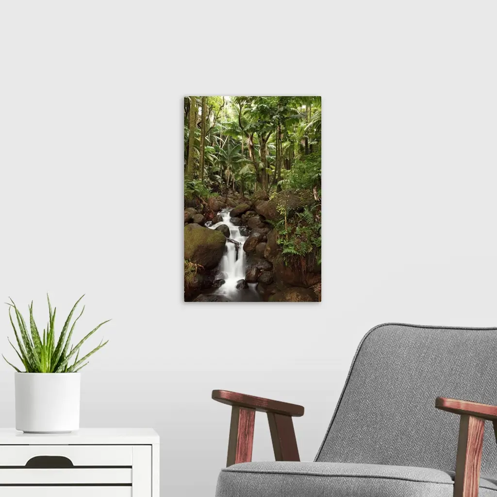 Stream Running Through The Rainforest Near Hilo, Big Island, Hawaii wall art for home and office decor. Discover canvas art prints, photos, mural, big canvas art and framed wall art in GreatBigCanvas.com's varied collections.