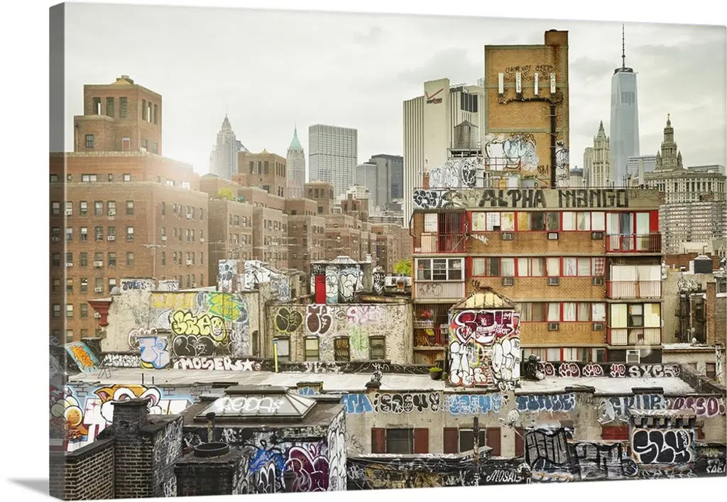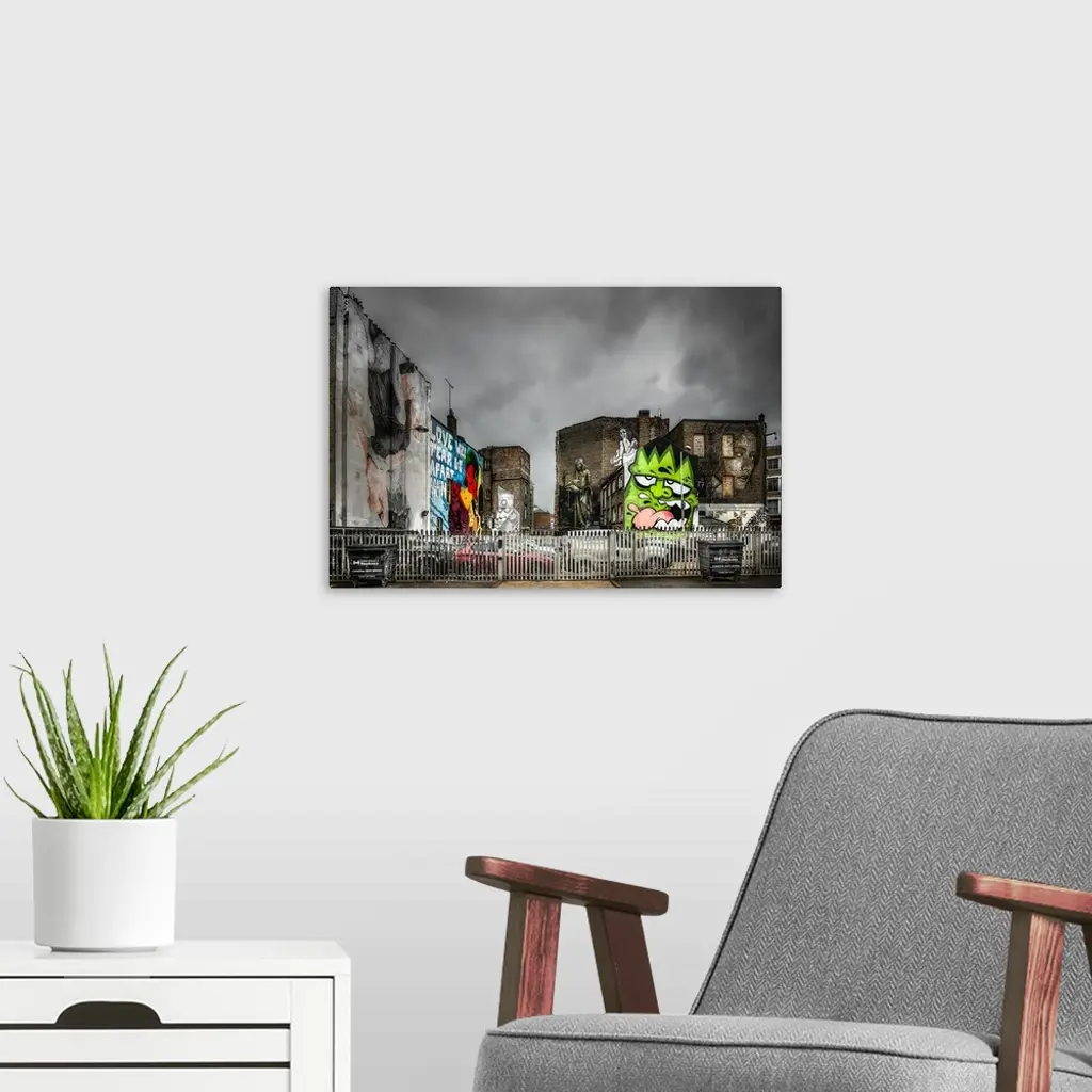 Fine art photograph of a graffiti on the facade of a city building.