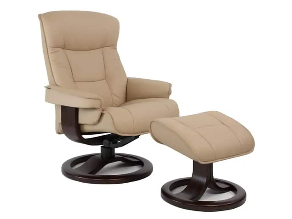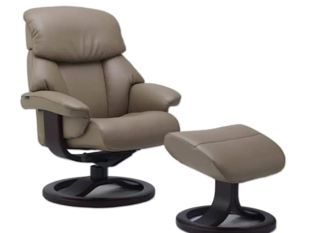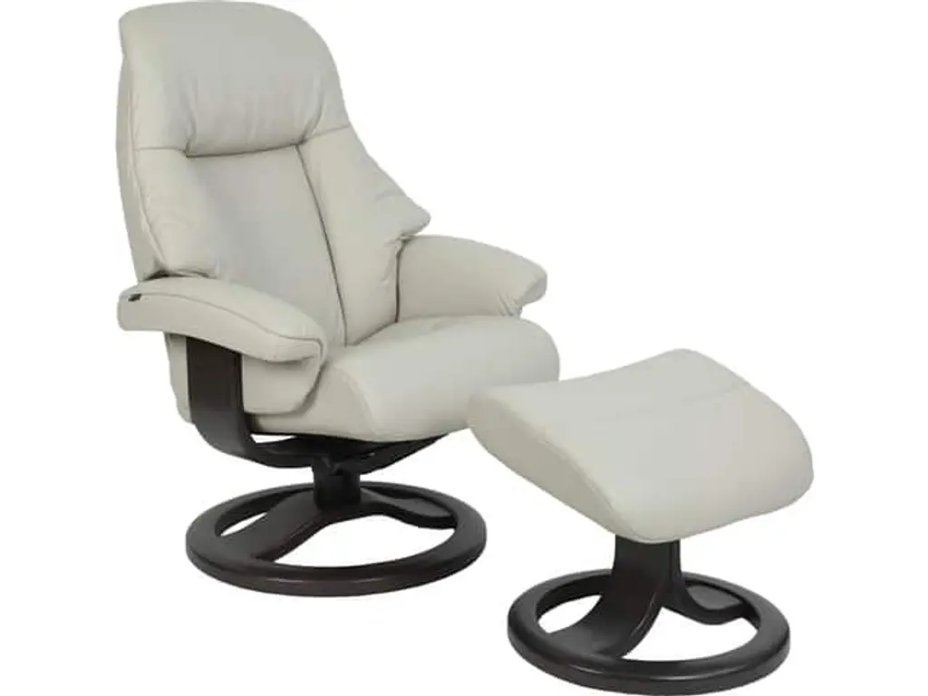 Made in Norway, the Stressless Admiral Recliner is the pinnacle of comfort and timeless design. Each piece is upholstered in luxurious top grain leather, supported by the beautifully sculpted solid beech wood base. Bonus features include ample padding on the headrest with a head-tilt mechanism which allows for ultimate relaxation. The matching ottoman is included.