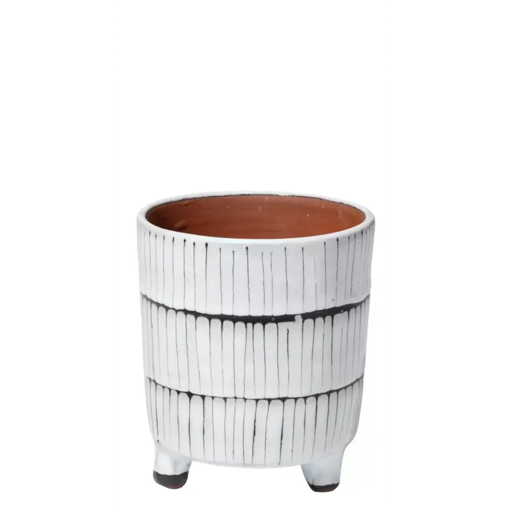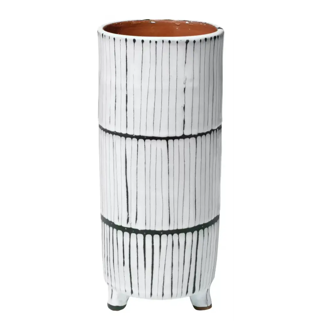 With imperfect dark grey lines and cream finishes, this set of ceramic vessels is ready to style any table, desk or windowsill it meets. Handmade by artisants in varying heights and diameters, you can easily display your favorite foliage.