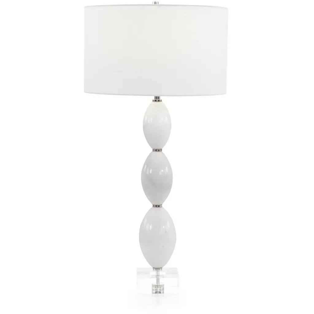This Ceramic Table Lamp by Strick & Bolton is a stylish addition to your living room/ home space. This table lamp features a stacked, ribbed ceramic base supported by a slightly tapered base and brushed nickel accents. The textured design adds dimension to the rich finish, while a round hardback shade in white linen completes the look. Illuminate your space with the elegant and contemporary Strick and Bolton Table Lamp. Features