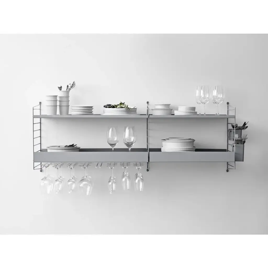 The String hanger rack is a multifunctional accessory for hanging wine glasses, utensils, towels, etc. The set includes two hanger racks that can be attached to the String metal shelves. Designed by Nils Strinning in 1949, the ladder-like side and floor panels of the String System can be combined with shelves, magazine shelves, work desks, folding tables, chests and cabinets to form an ensemble that best suits your needs. The timeless and minimalist design of String System is perfect for both contemporary homes and offices.