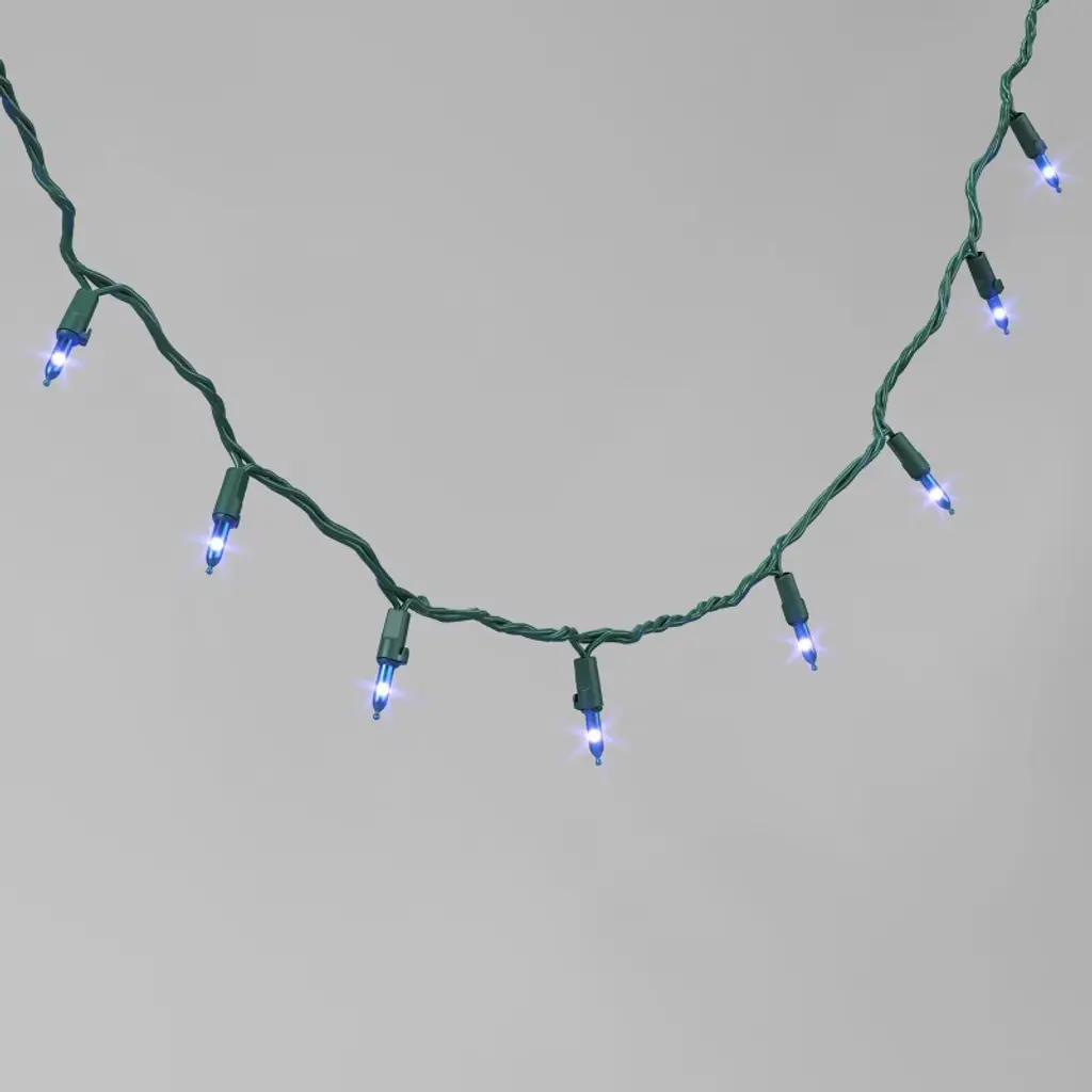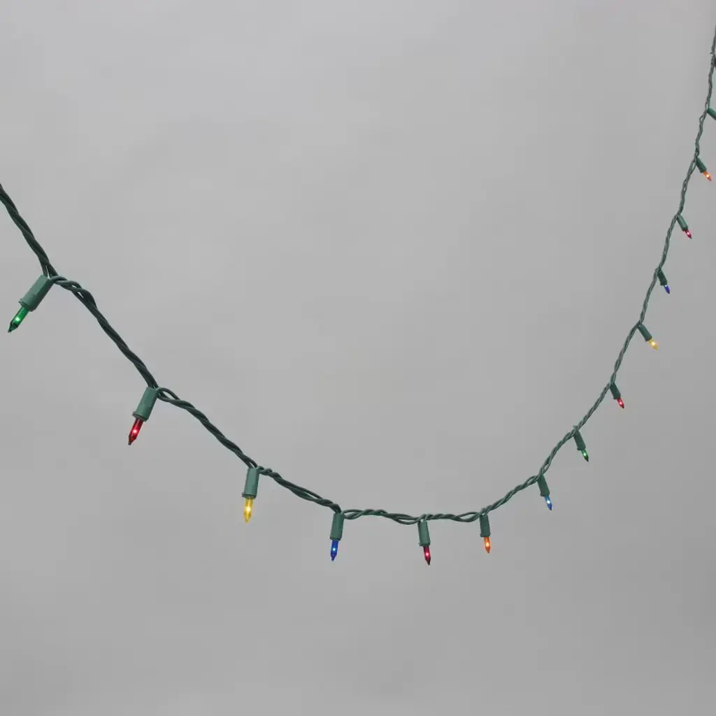 23' long multiple color options light set on green or white wire. Strand is ended connecting with 50 lights with 5.5" spacing. Add sparkle to your home with beautiful incandescent lighting.