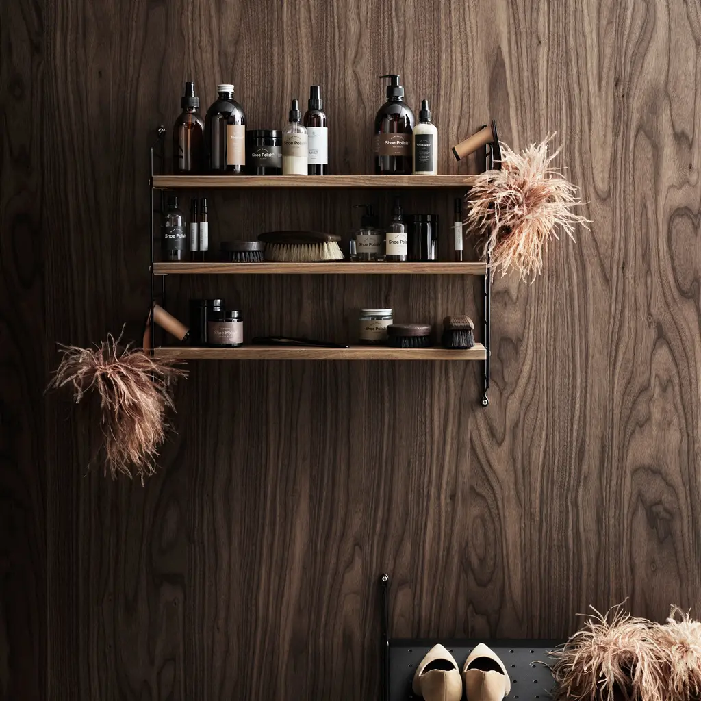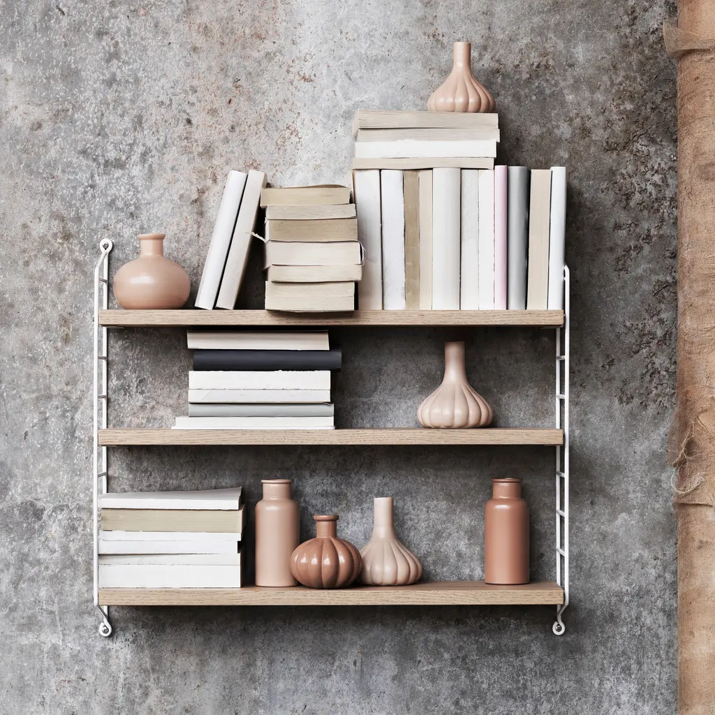 One of the first items Andy bought when he was furnishing his home in L.A. was a vintage set of this iconic shelving first introduced by Nisse Strinning in 1949. The Swedish architect-designer is considered one of the founding fathers of the ideals of what is now widely recognized as Scandinavian design. So elegantly minimal, unpretentious and sturdy, it became Andy's obsession to bring the new incarnations to the U.S. Presto! The slender "ladder" allows shelves to be easily repositioned. Comprises of three pre-packed shelves (as displayed).