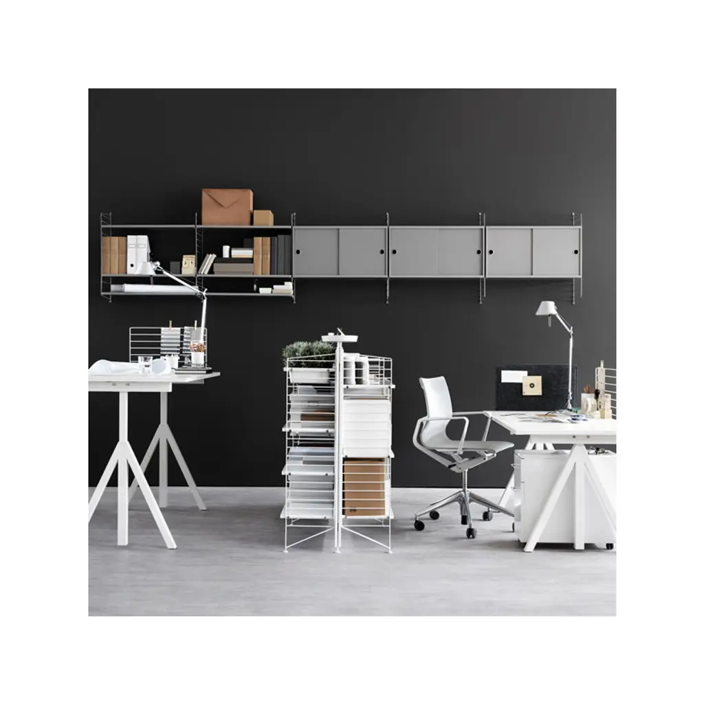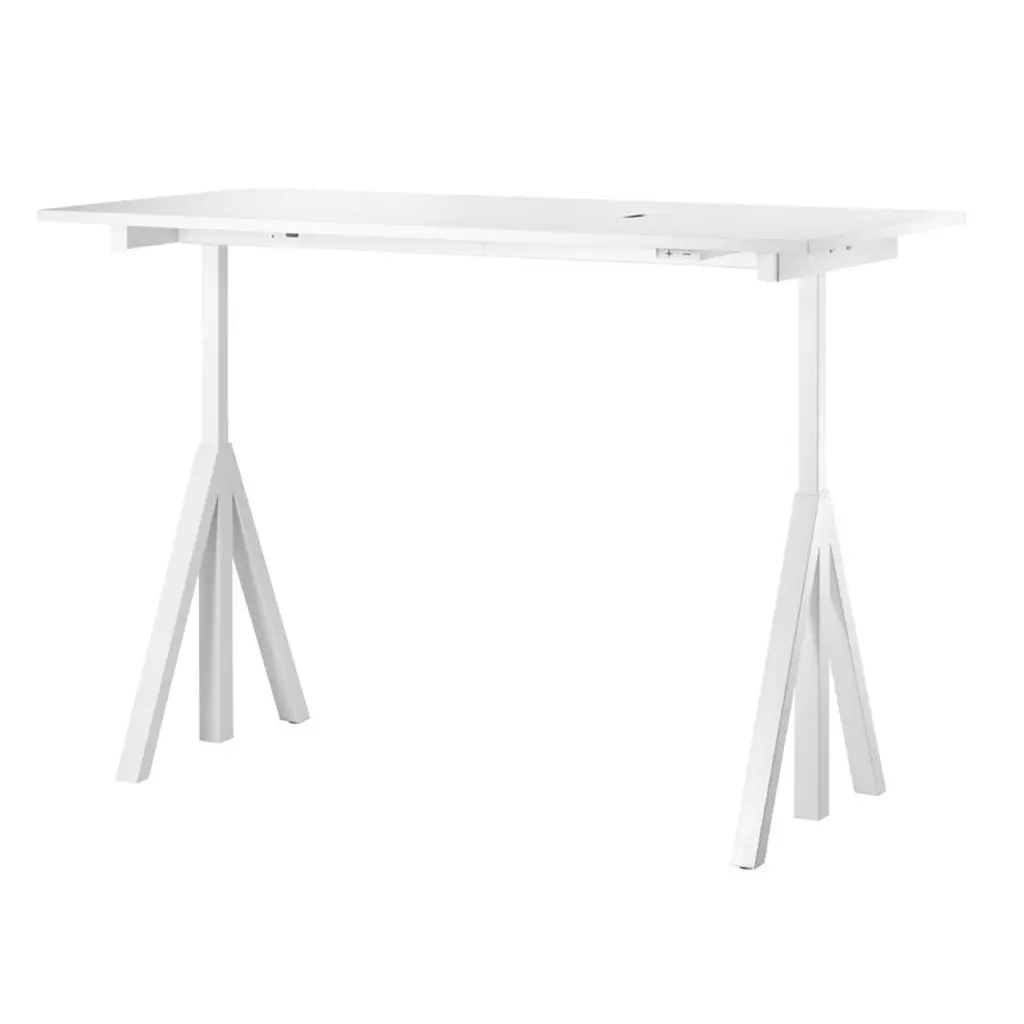 Electronically height adjustable table offers comfort and ergonomics to your workstation by enabling standing up while working. The table has a cable tray where all the wires can be neatly stored. Architect Anna von Schewen and designer Björn Dahlström designed a completely new series of products using the String System as a base. The new series, named String Works, offers flexible and adaptable solutions for modern work environments. The furniture in the String Works series is equally suited for use in the office or at home.