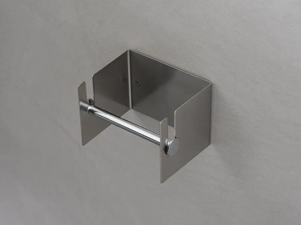 STRIP is a bar system for accessories that changes in depth in order to hold the accessories – to be positioned freely along the bar’s more narrow length – as well as the towels. Available one depth version too. As an alternative to the traditional accessories hung individually, Strip allows for the re-union of functions (soap dish, toothbrush holder, dispenser, towel hanger, shelves and paper roll) that integrate with the bar, since they have the same height, and provide the object with aesthetic power. Available in various sizes and finishings: Brushed or varnished steel (moab or upon request colours), burnished steel.
