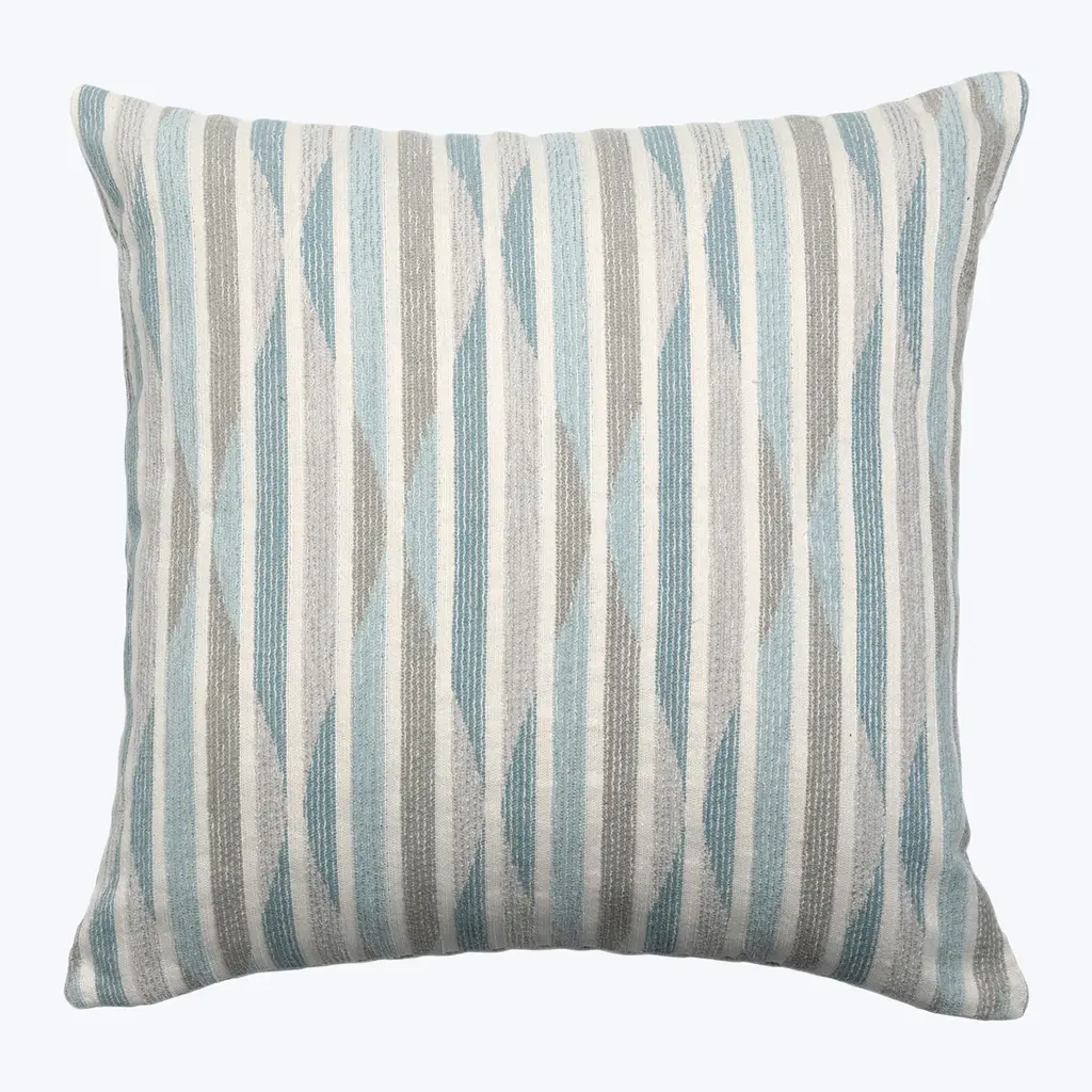 Discover the Stripe Ogee Performance Pillow Aqua by Kevin O’Brien Studio. Handcrafted by expert artisans in Philadelphia, this elegant pillow features a captivating ogee pattern in a soft, natural palette. A sophisticated addition to contemporary and coastal outdoor spaces. Crafted in weather-resistant performance fabric. See also the lumbar edition.