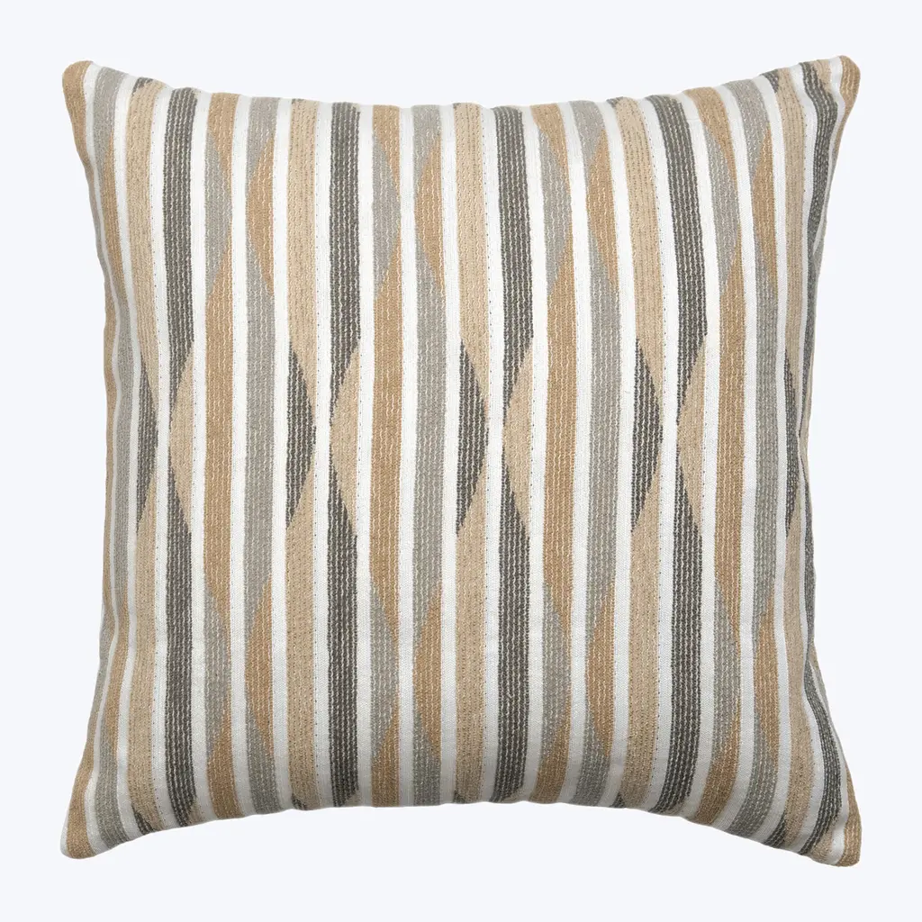 Discover the Stripe Ogee Performance Pillow Shell by Kevin O’Brien Studio. Handcrafted by expert artisans in Philadelphia, this elegant pillow features a captivating ogee pattern in a soft, earthy palette. A sophisticated addition to contemporary outdoor spaces. Crafted in weather-resistant performance fabric. See also the lumbar edition.