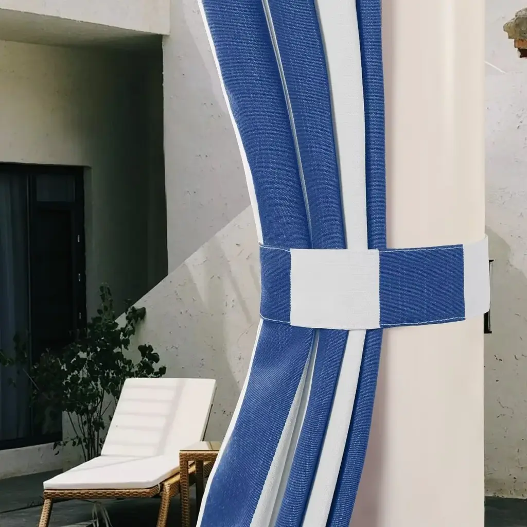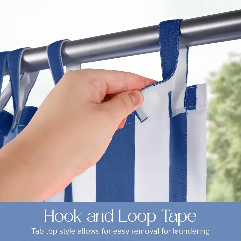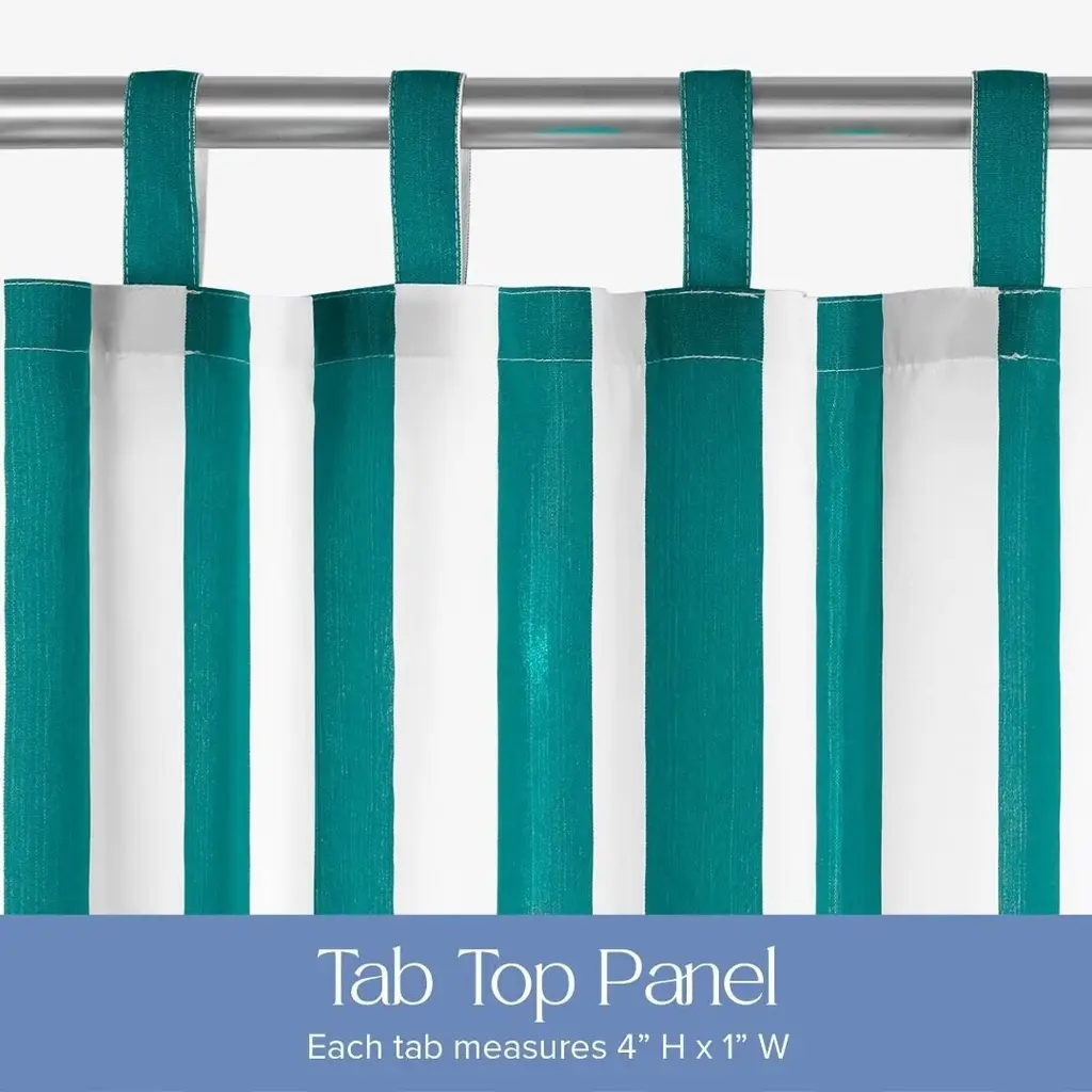 The Cabana 2" Classical Stripe panel is designed to enhance your outdoor experience while offering robust protection against the elements. Safeguard your outdoor areas from harmful UV rays with our specially treated fabric. This privacy panel reduces glare and provides shade while maintaining its stunning color. The 4"X1" tabs can be hung easily without removing the pole by simply attaching the tabs with the hook and loop fasteners. Each panel is outfitted with a wind proofing mini grommet in the bottom 2 corners and comes with a tieback. Perfect way to enhance your patio, gazebo, deck, beach house or outdoor living space. Features: Dimensions: