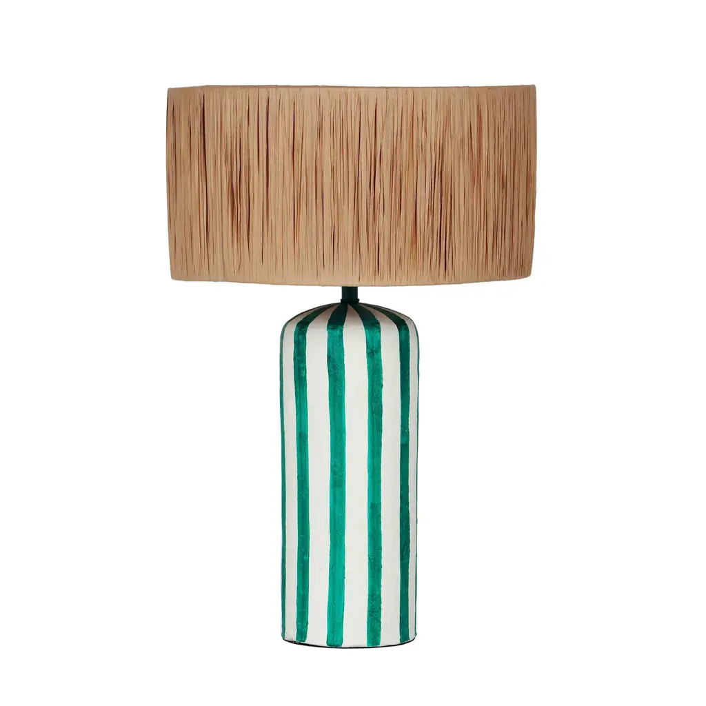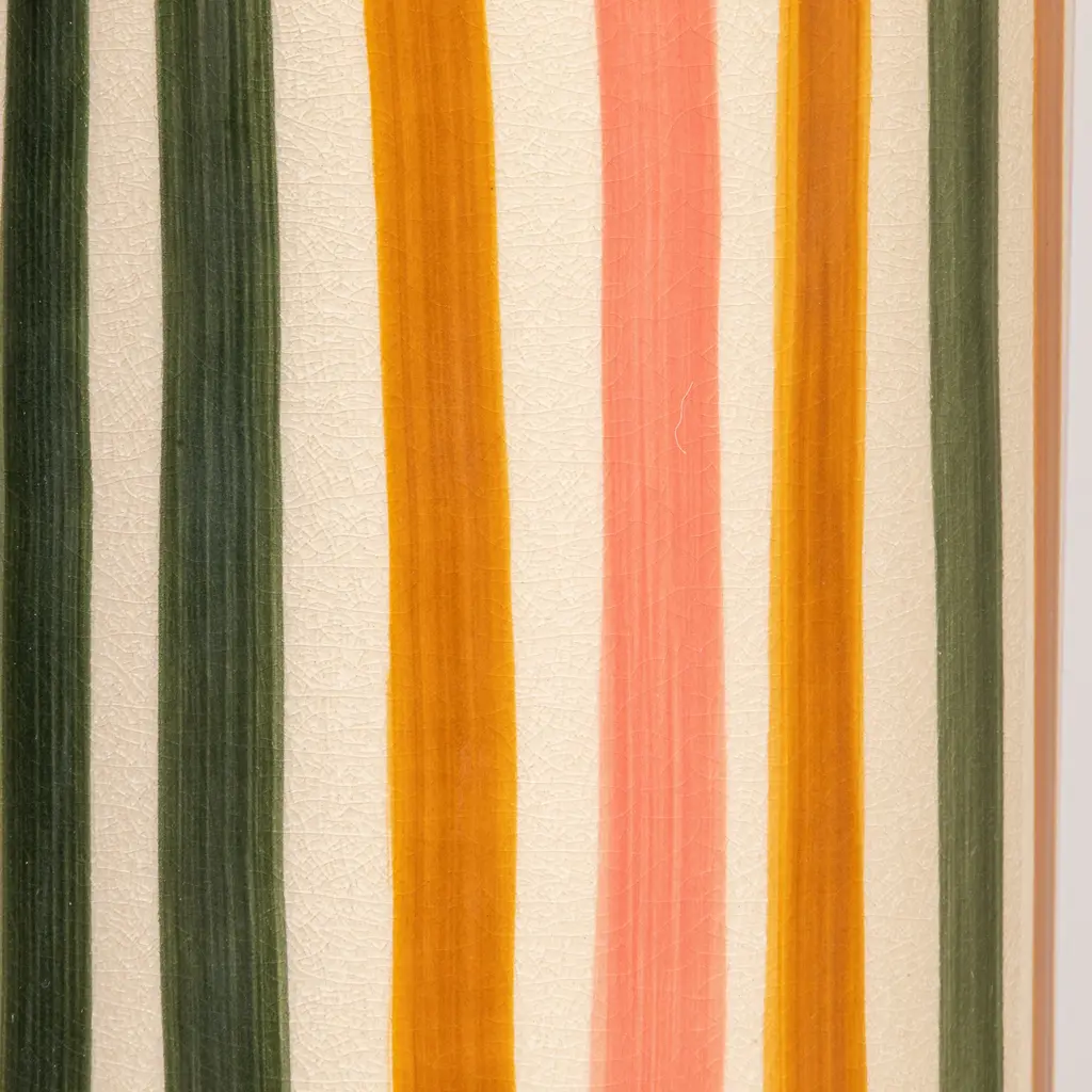 Stripe Stoneware Table Lamp With Linen Shade - Multicolor