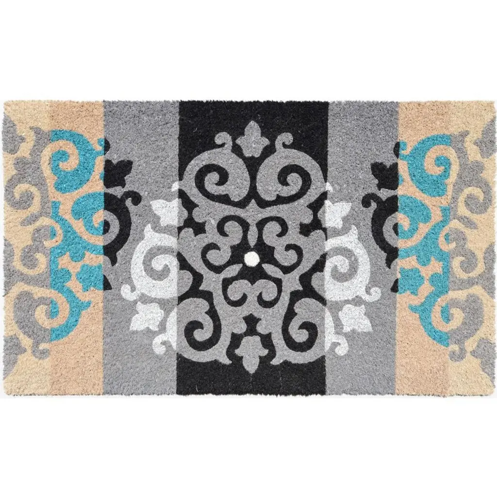 These vibrantly colored mats are created from natural coconut husk and PVC non-skid backing, which are printed with water base weather resistant dye. These mats are about 1/2" thick.
