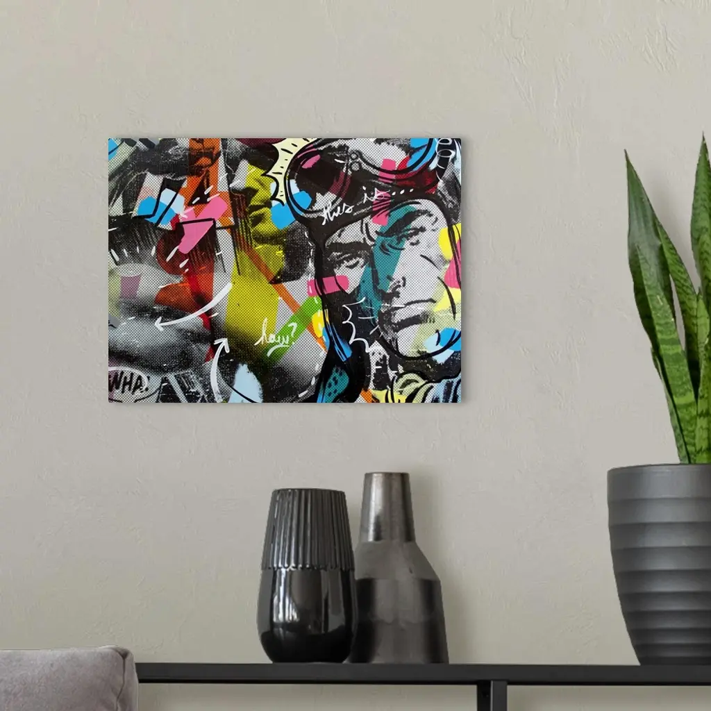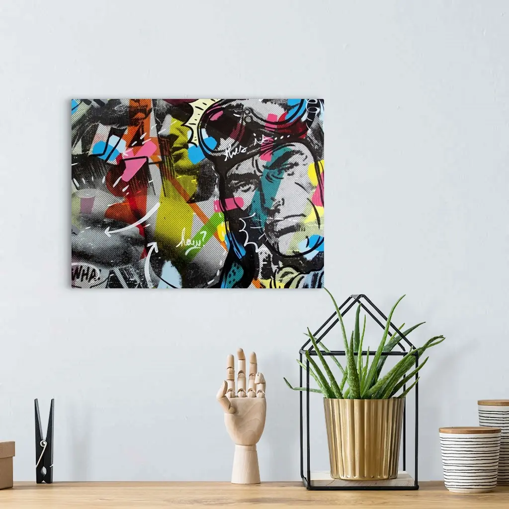 Pop art composed of comic illustrations and bold text, reminiscent of Lichtenstein, of a handsome pilot.