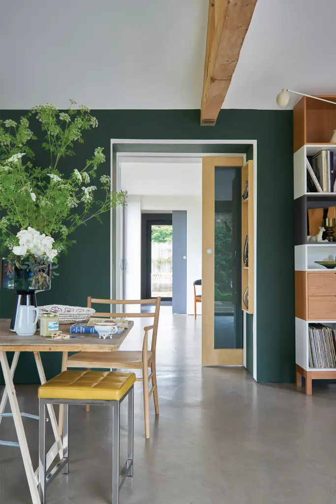 #### *A DEEP, DARK GREEN*This deep, dark green is also the color of the original studio at Farrow & Ball where the first colors were created. Within the home, this deep hue appears almost black unless in very well-lit rooms. On exterior surfaces, the rich pigments respond extraordinarily to light and magically appear much greener than on the color card.Recommended Primer & Undercoat: Dark Tones