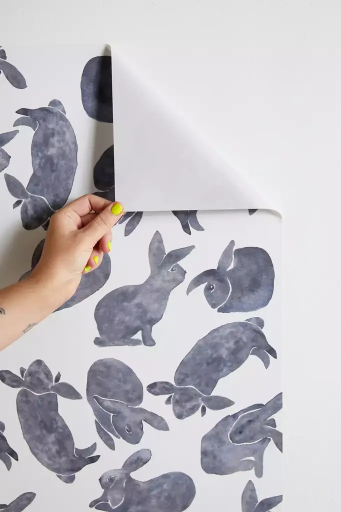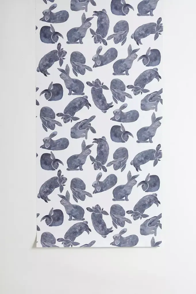 Easily removable stick-on wallpaper by Studio Polilla featuring a series of posing bunnies for a whimsical feel. Cut in panels you can use to accent one wall or tile all over your room. Comes with one strip of wallpaper in an allover repeating pattern - choose from three different sizes to best suit your space. **Features** \- Peel and stick wallpaper panel by Studio Polilla \- Finished with a repeating bunny pattern \- Easily removes from your walls **Content + Care** \- Includes one panel \- Paper \- Wipe clean \- Made in the USA **Size** \- Small dimensions: 48"l x 24"w \- Medium dimensions: 96"l x 24"w \- Large dimensions: 120"l x 24"w