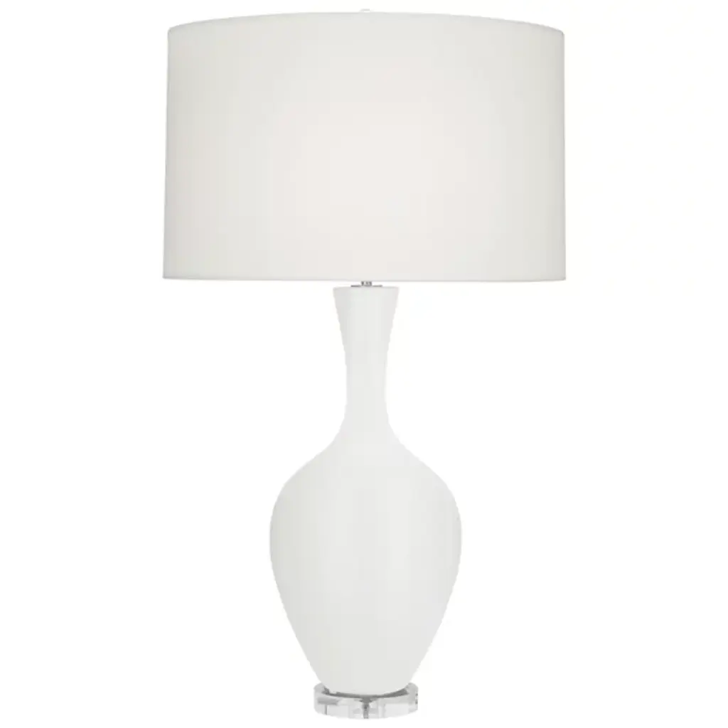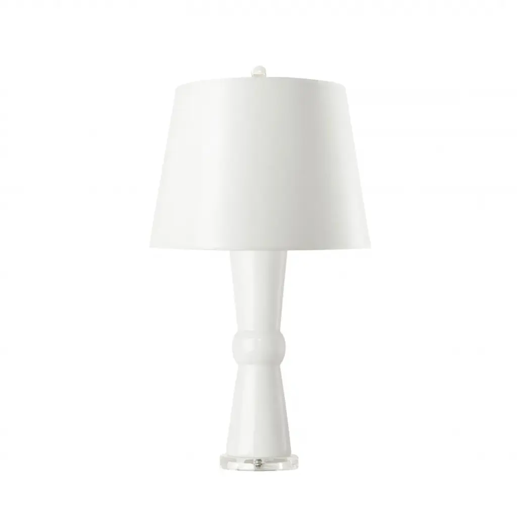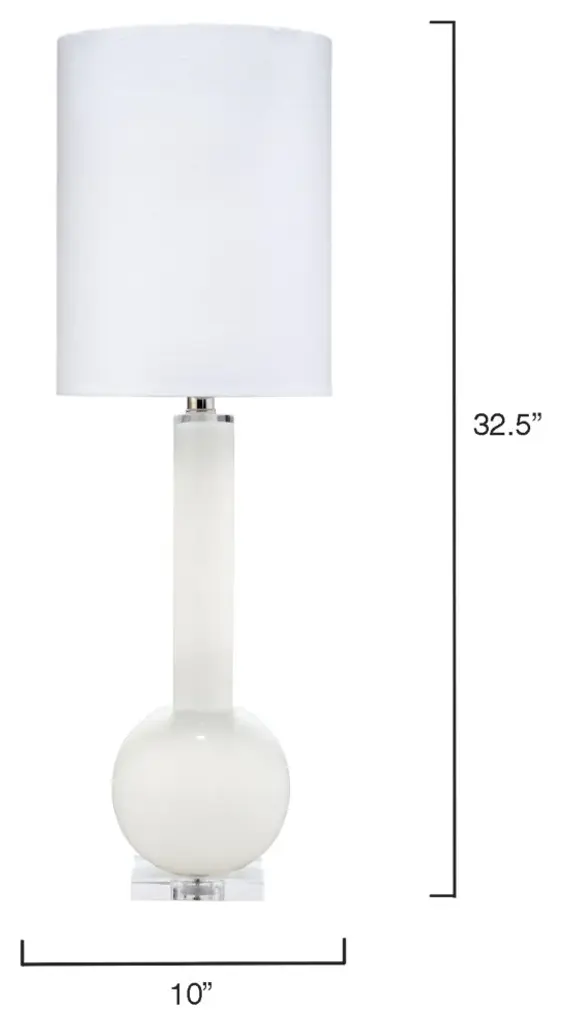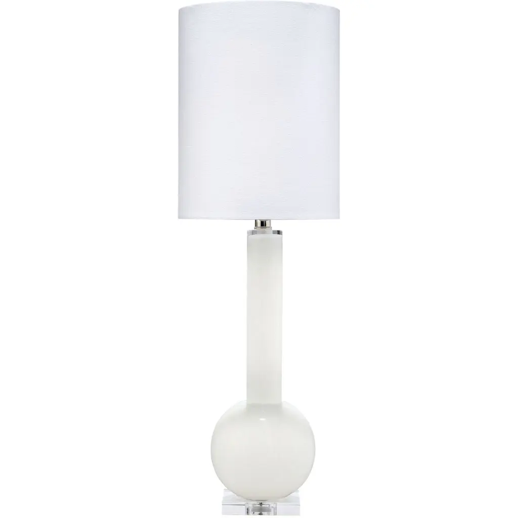 Studio Table Glass Lamp, With Tall Thin Drum Shade, White