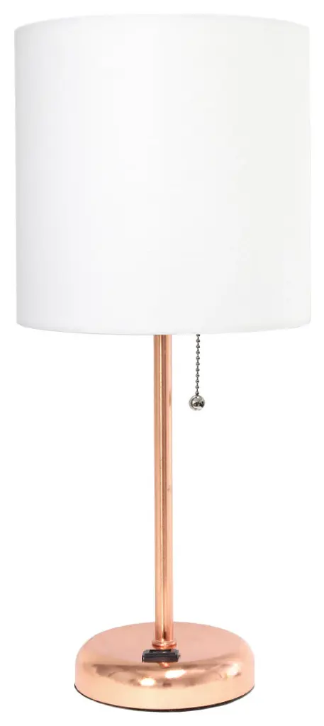 Stunning Stick Lamp with Charging Outlet and Fabric Shade. Perfect for bedrooms, kids and teens, college dorms, nurseries, or fun offices. This lamp will add a fabulous flair to any room. Manufactured in china. This fun and fashionable lamp features a brushed steel base and a fabric shade. It comes equipped with a 2 prong outlet seated in the base for use to charge mobile phones, handheld games, tablets, and other small electronics. This lamp will add a fabulous flair to any room. Perfect for bedrooms, kids and teens, college dorms, nurseries, or fun offices! Brushed Steel base with Charging Outlet. Fabric ShadePower Outlet on base for charging your Cell phone.- Perfect for bedrooms, kids and teens, college dorms, nurseries, or fun offices- This lamp will add a fabulous flair to any room- Manufactured in china- A brushed steel base and a fabric shade- Perfect for bedrooms, kids and teens, college dorms, nurseries, or fun offices!- Brushed Steel base with Charging Outlet- Fabric Shade