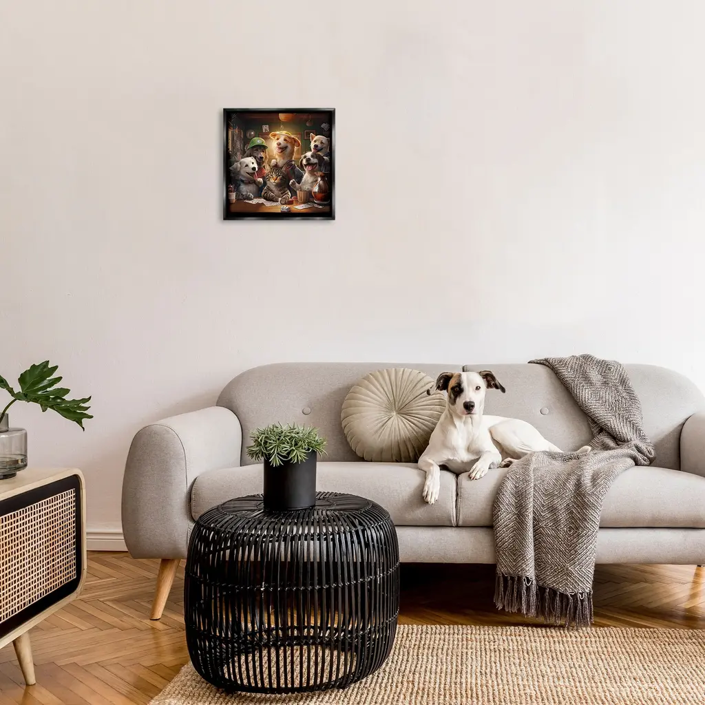 Elevate your home or office to the next level with Stupell Framed Floating Canvas Wall Art. Our premium hand-stretched canvas is mounted securely into a sturdy lightweight frame. The museum-style gap between the wrapped canvas and the box frame gives the illusion of floating artwork. Stupell Wall Art is made in the USA.Features: Dimensions: 18 x 1.7 x 18 Frame, 17 x 1.5 x 17 Canvas ArtFloating Frame Canvas Products are available in sizes 18"x18" and 25"x25". All Floating Frame Canvas Products have a 1.7" Depth.Wall Art is Ready to Hang with Hardware Free Hanging. No Installation required. For Easy Set Up Lean or Layer Artwork on Shelf or Against Wall. Artwork is Permently Fixed into the Frame.Our elevated 1.7" Thick Floating Frame is the perfect complement to our canvas style Wall Art. We use only the highest quality inks in house with industry leading printing solutions. Canvas is hand stretched over a durable wood foundation and then mounted securly into a Modern Box Frame. Made in the USA.Artwork Relates To: Fun, Animal, Canine, Dog, Mammal, Pet, Humor, Funny, Bar, Game, Casino, CardsDesign by Jim Baldwin