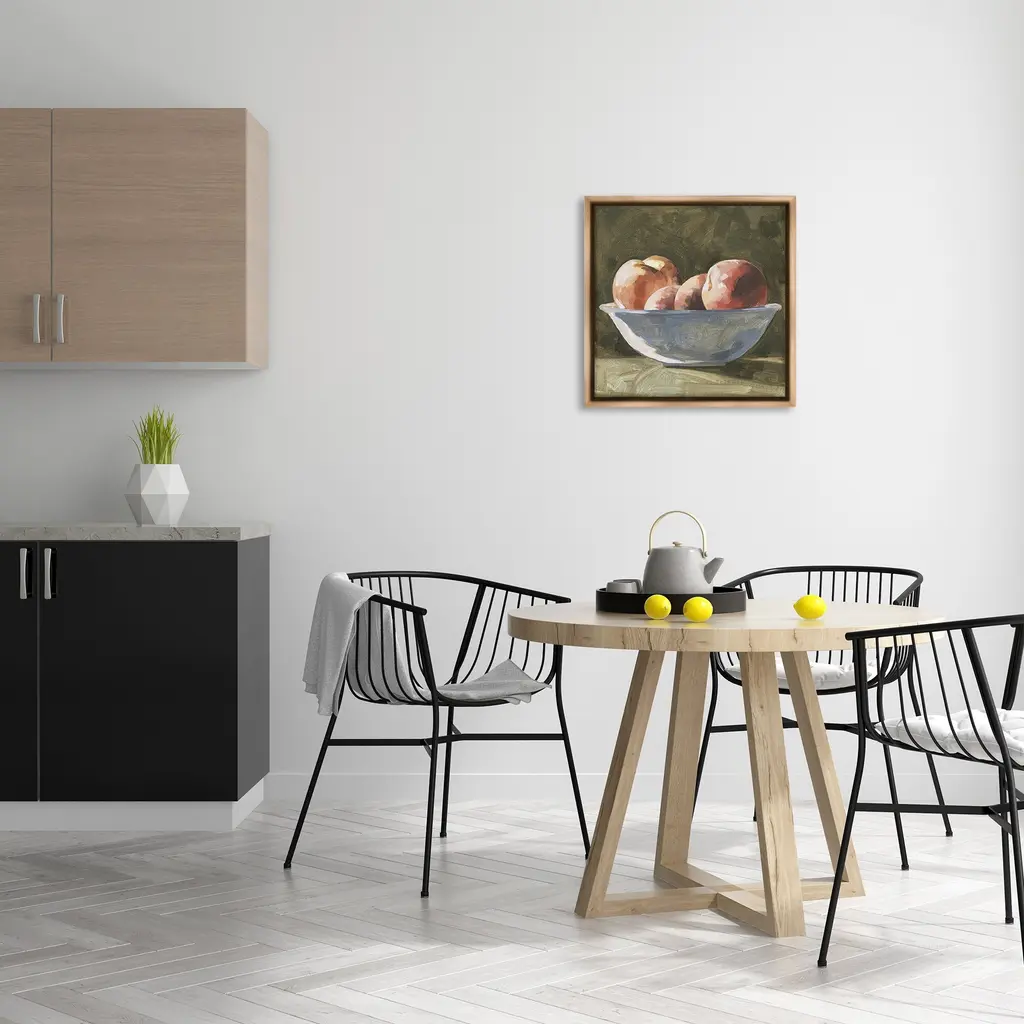 Elevate your home or office to the next level with Stupell Framed Floating Canvas Wall Art. Our premium hand-stretched canvas is mounted securely into a sturdy lightweight frame. The museum-style gap between the wrapped canvas and the box frame gives the illusion of floating artwork. Stupell Wall Art is made in the USA.Features: Dimensions: 18 x 1.7 x 18 Frame, 17 x 1.5 x 17 Canvas ArtFloating Frame Canvas Products are available in sizes 18"x18" and 25"x25". All Floating Frame Canvas Products have a 1.7" Depth.Wall Art is Ready to Hang with Hardware Free Hanging. No Installation required. For Easy Set Up Lean or Layer Artwork on Shelf or Against Wall. Artwork is Permently Fixed into the Frame.Our elevated 1.7" Thick Floating Frame is the perfect complement to our canvas style Wall Art. We use only the highest quality inks in house with industry leading printing solutions. Canvas is hand stretched over a durable wood foundation and then mounted securly into a Modern Box Frame. Made in the USA.Artwork Relates To: Painting, Food, Fruit, Plant, Produce, Apple, Bowl, Still LifeDesign by Emma Caroline
