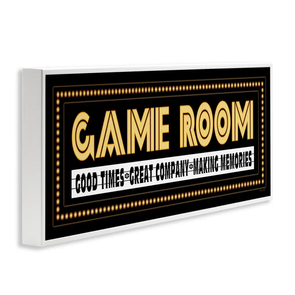 Stupell Arcade Game Room Quote Vintage Style Sign Framed Wall Art - Yellow - 24 X 10 - White