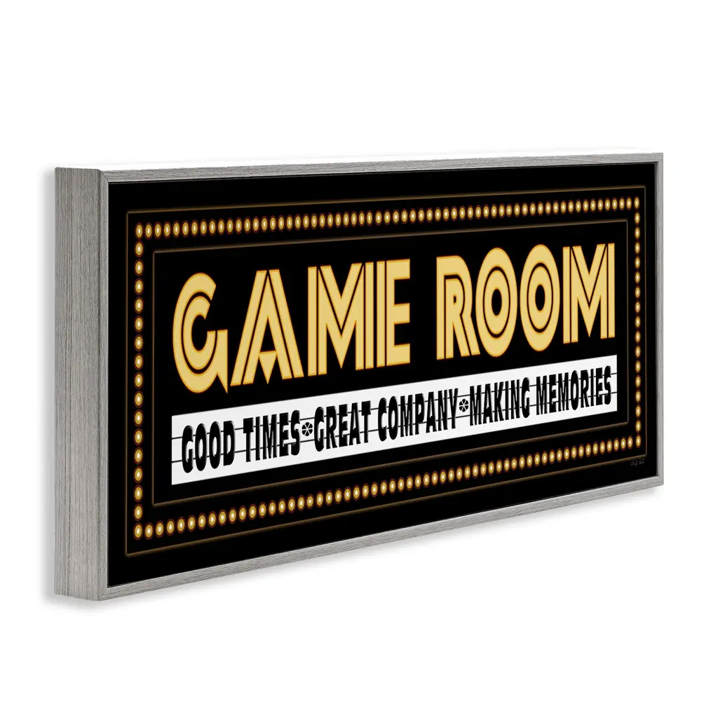 Stupell Arcade Game Room Quote Vintage Style Sign Framed Wall Art - Yellow - 30 X 13 - Grey