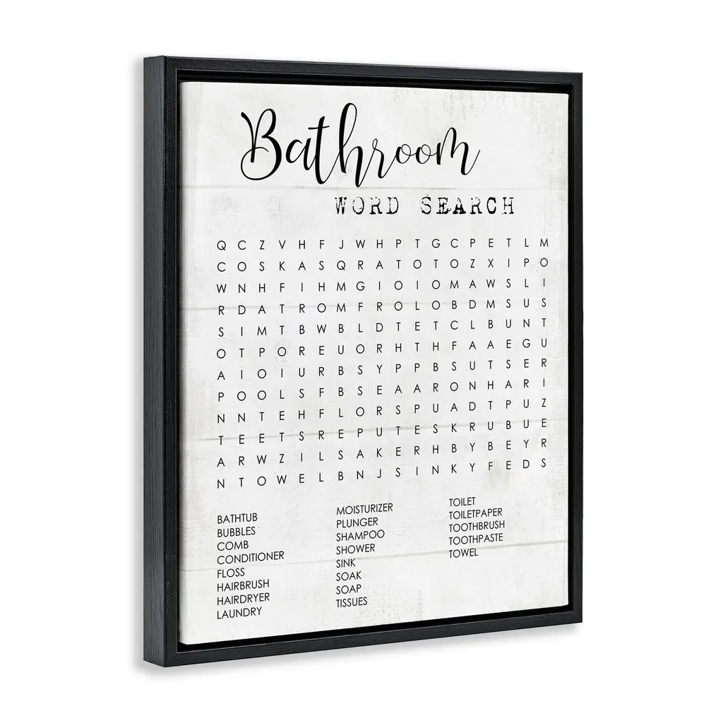 Stupell Bathroom Word Search Fun Family Word Design Floater Frame - Black - 17 X 21 - Black