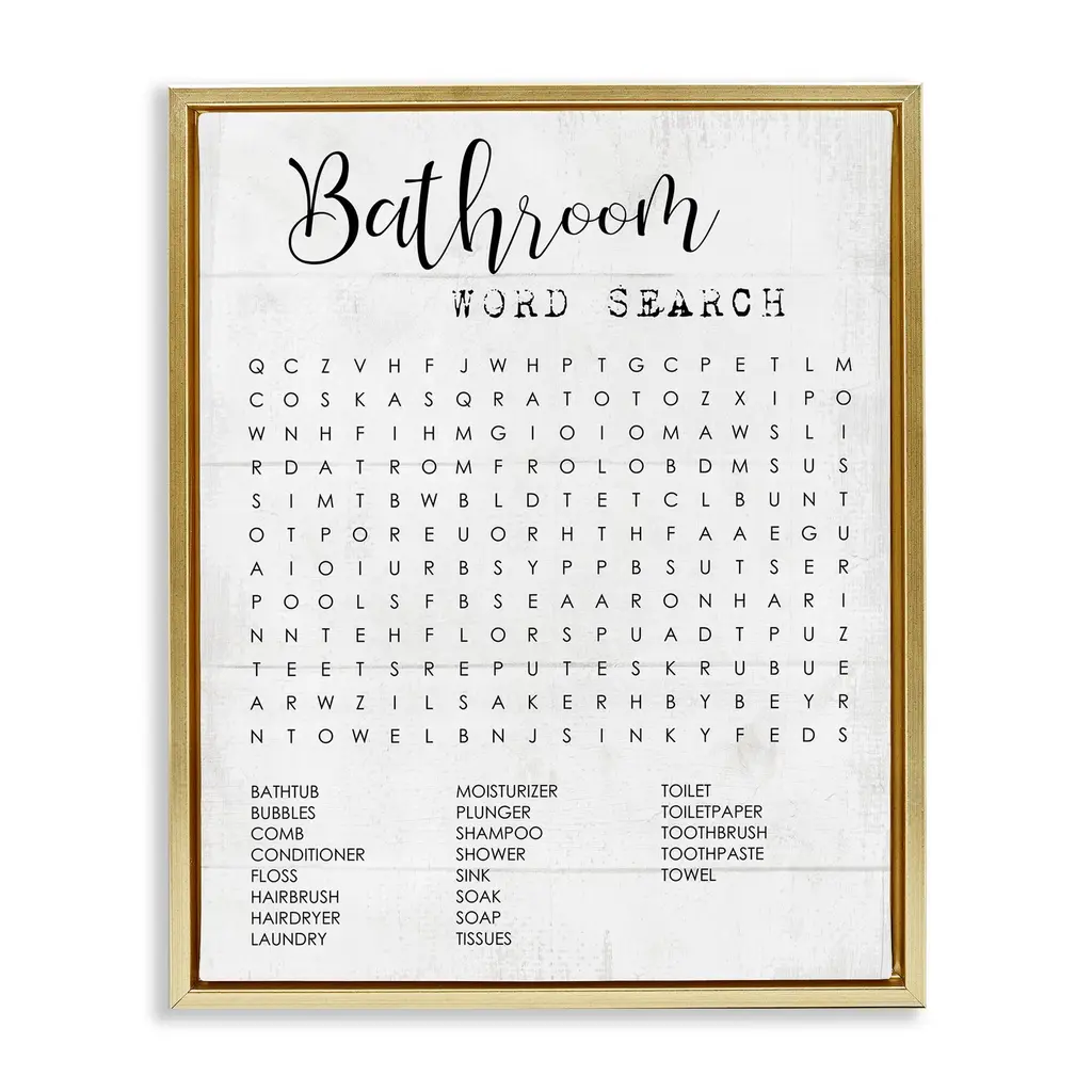 Stupell Bathroom Word Search Fun Family Word Design Floater Frame - Black - 17 X 21 - Gold