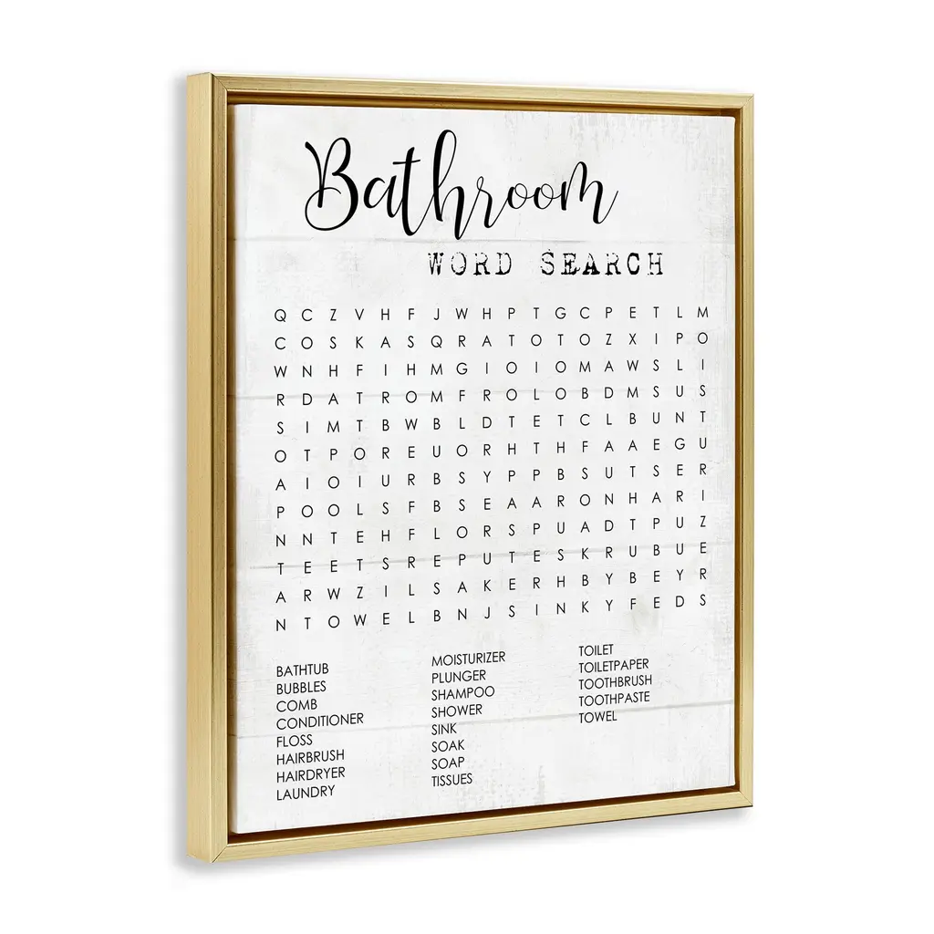 Stupell Bathroom Word Search Fun Family Word Design Floater Frame - Black - 25 X 31 - Gold