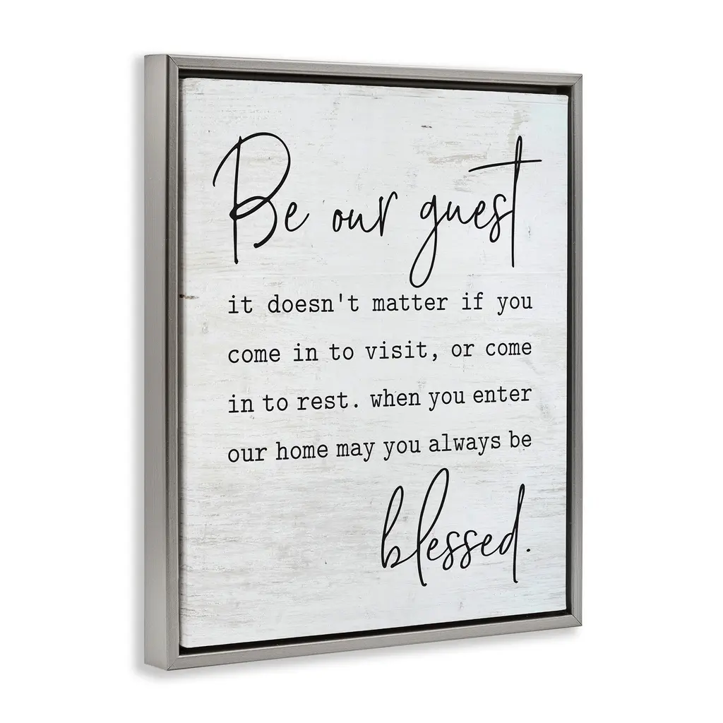 Stupell Be Our Guest Home Family Inspirational Word On Wood Texture Design Floater Frame - Off-White - 17 X 21 - Grey