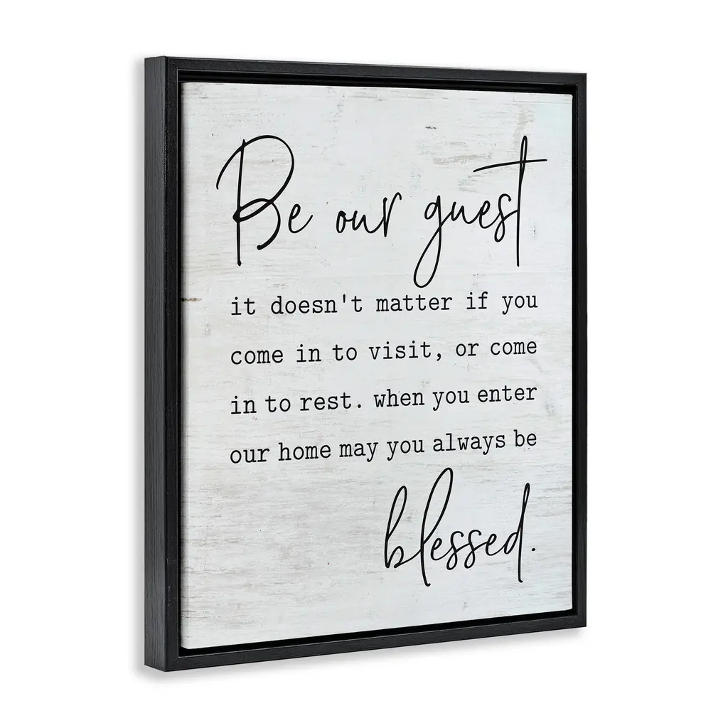 Stupell Be Our Guest Home Family Inspirational Word On Wood Texture Design Floater Frame - Off-White - 25 X 31 - Black