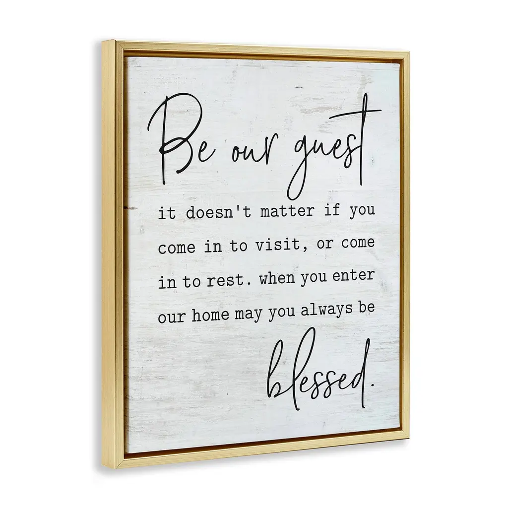 Stupell Be Our Guest Home Family Inspirational Word On Wood Texture Design Floater Frame - Off-White - 25 X 31 - Gold