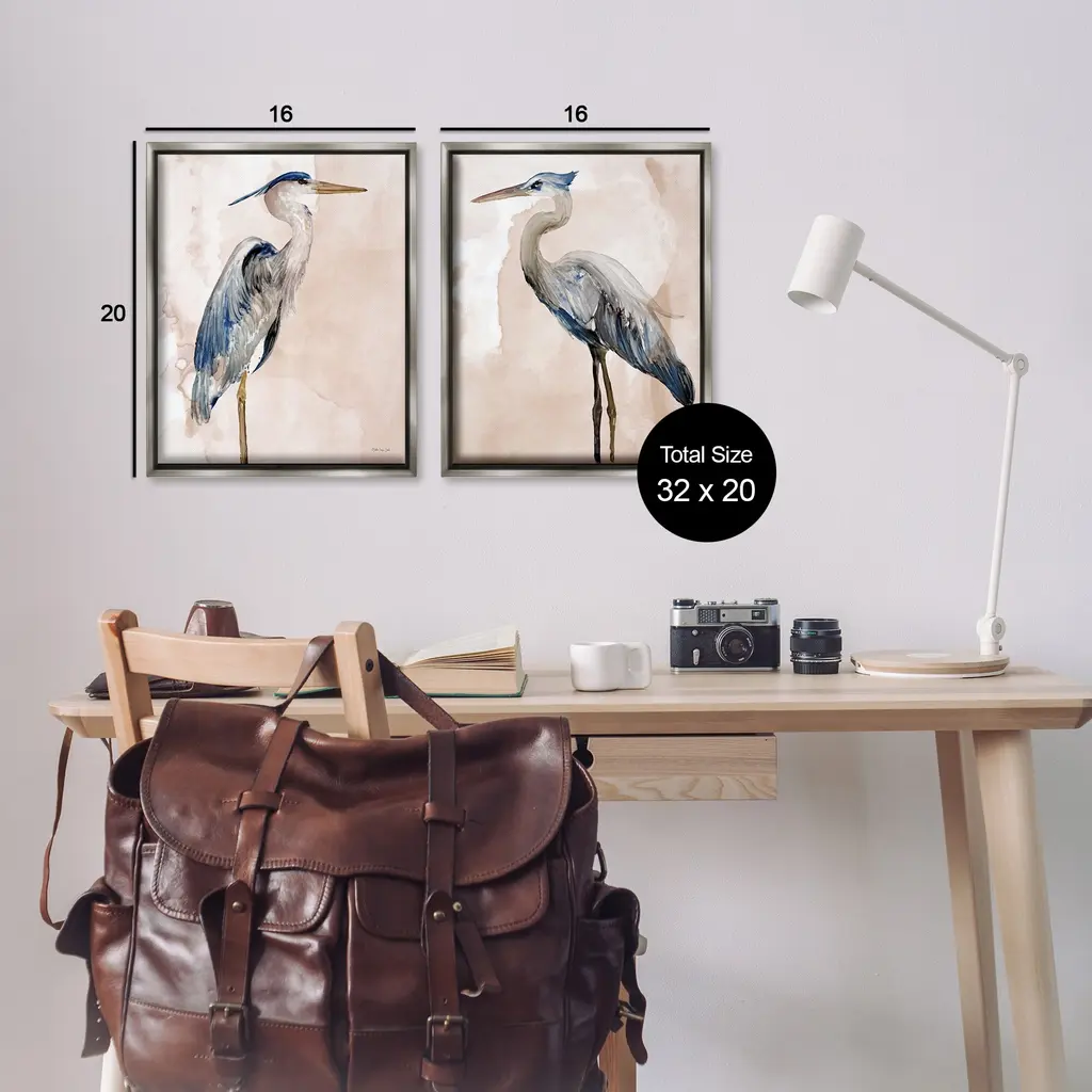 Elevate your home or office to the next level with Stupell Framed Floating Canvas Wall Art. Our premium hand-stretched canvas is mounted securely into a sturdy lightweight frame. The museum-style gap between the wrapped canvas and the box frame gives the illusion of floating artwork. Stupell Wall Art is made in the USA.Features: Dimensions: 2 Piece Set, Each Frame is 17 x 1.7 x 21Two Piece Floater Framed Canvas are available as 17x21 or 25x31 Panels. All Floater Frame Products have a 1.7" Depth.Wall Art is Ready to Hang with Hardware Free Hanging. No Installation required. For Easy Set Up Lean or Layer Artwork on Shelf or Against Wall. Artwork is Permently Fixed into the Frame.Our elevated 1.7" Thick Floating Frame is the perfect complement to our canvas style Wall Art. We use only the highest quality inks in house with industry leading printing solutions. Canvas is hand stretched over a durable wood foundation and then mounted securly into a Modern Box Frame. Made in the USA.Artwork Relates To: Bird, Animal, Waterfowl, Heron, Ardeidae, Painting, Watercolor, NauticalDesign by Stellar Design Studio