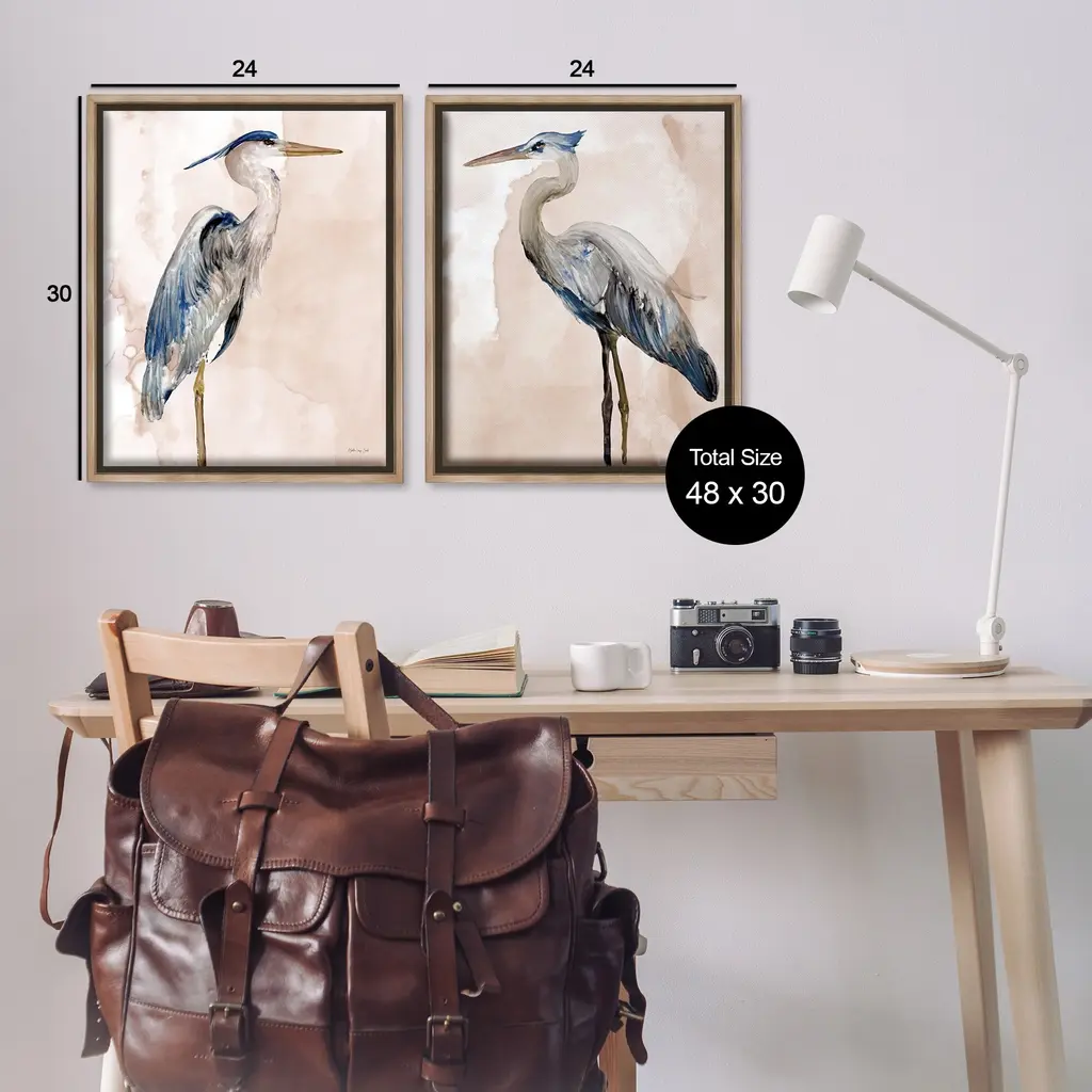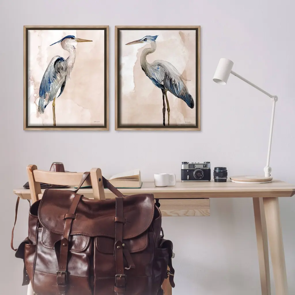 Elevate your home or office to the next level with Stupell Framed Floating Canvas Wall Art. Our premium hand-stretched canvas is mounted securely into a sturdy lightweight frame. The museum-style gap between the wrapped canvas and the box frame gives the illusion of floating artwork. Stupell Wall Art is made in the USA.Features: Dimensions: 2 Piece Set, Each Frame is 17 x 1.7 x 21Two Piece Floater Framed Canvas are available as 17x21 or 25x31 Panels. All Floater Frame Products have a 1.7" Depth.Wall Art is Ready to Hang with Hardware Free Hanging. No Installation required. For Easy Set Up Lean or Layer Artwork on Shelf or Against Wall. Artwork is Permently Fixed into the Frame.Our elevated 1.7" Thick Floating Frame is the perfect complement to our canvas style Wall Art. We use only the highest quality inks in house with industry leading printing solutions. Canvas is hand stretched over a durable wood foundation and then mounted securly into a Modern Box Frame. Made in the USA.Artwork Relates To: Bird, Animal, Waterfowl, Heron, Ardeidae, Painting, Watercolor, NauticalDesign by Stellar Design Studio