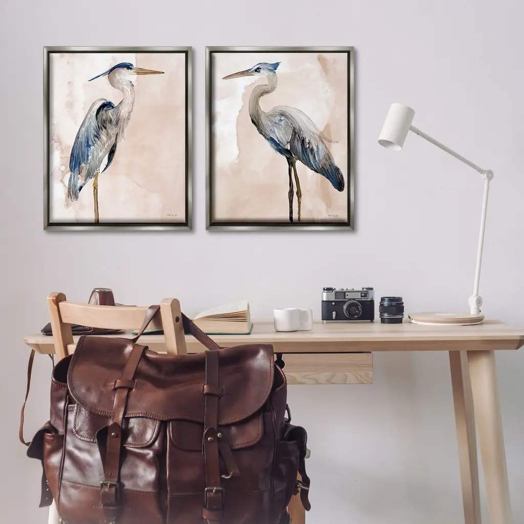 Elevate your home or office to the next level with Stupell Framed Floating Canvas Wall Art. Our premium hand-stretched canvas is mounted securely into a sturdy lightweight frame. The museum-style gap between the wrapped canvas and the box frame gives the illusion of floating artwork. Stupell Wall Art is made in the USA.Features: Dimensions: 2 Piece Set, Each Frame is 17 x 1.7 x 21Two Piece Floater Framed Canvas are available as 17x21 or 25x31 Panels. All Floater Frame Products have a 1.7" Depth.Wall Art is Ready to Hang with Hardware Free Hanging. No Installation required. For Easy Set Up Lean or Layer Artwork on Shelf or Against Wall. Artwork is Permently Fixed into the Frame.Our elevated 1.7" Thick Floating Frame is the perfect complement to our canvas style Wall Art. We use only the highest quality inks in house with industry leading printing solutions. Canvas is hand stretched over a durable wood foundation and then mounted securly into a Modern Box Frame. Made in the USA.Artwork Relates To: Bird, Animal, Waterfowl, Heron, Ardeidae, Painting, Watercolor, NauticalDesign by Stellar Design Studio