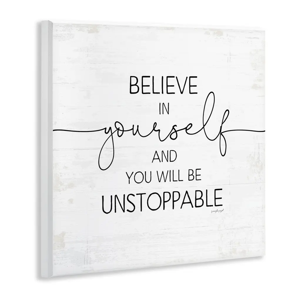 Stupell Believe In Yourself Inspirational Sentiments Distressed Charm Wall Plaque Art Design By Jennifer Pugh - 12 X 12