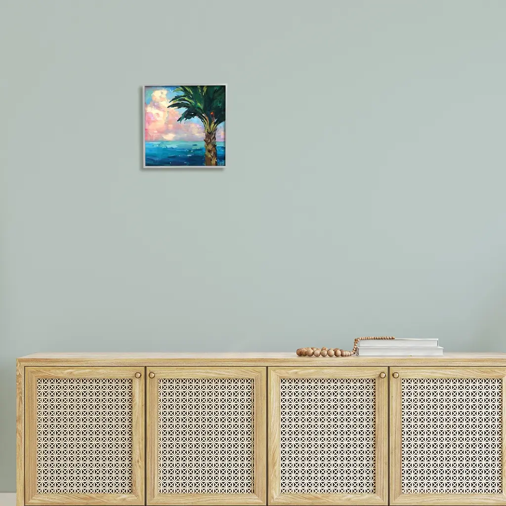 Stupell Bold Beach Horizon Palm Tree Pink Sunlit Clouds Framed Wall Art, Design By Page Pearson Railsback - 12 X 12 - Grey