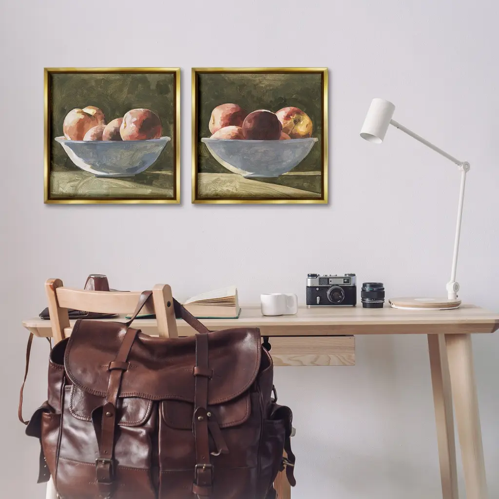 Elevate your home or office to the next level with Stupell Framed Floating Canvas Wall Art. Our premium hand-stretched canvas is mounted securely into a sturdy lightweight frame. The museum-style gap between the wrapped canvas and the box frame gives the illusion of floating artwork. Stupell Wall Art is made in the USA.Features: Dimensions: 2 Piece Set, Each Frame is 18 x 1.7 x 18Two Piece Floating Frame Canvas Products are available as 18"x18" or 25"x25" Panels. All Floating Frame Canvas Products have a 1.7" Depth.Wall Art is Ready to Hang with Hardware Free Hanging. No Installation required. For Easy Set Up Lean or Layer Artwork on Shelf or Against Wall. Artwork is Permently Fixed into the Frame.Our elevated 1.7" Thick Floating Frame is the perfect complement to our canvas style Wall Art. We use only the highest quality inks in house with industry leading printing solutions. Canvas is hand stretched over a durable wood foundation and then mounted securly into a Modern Box Frame. Made in the USA.Artwork Relates To: Painting, Food, Fruit, Plant, Produce, Bowl, Still Life, Apple, TraditionalDesign by Emma Caroline