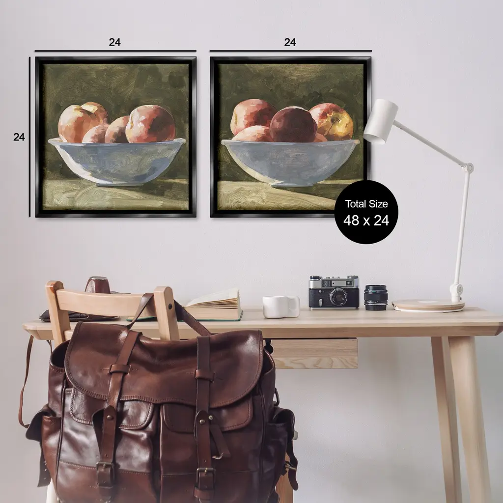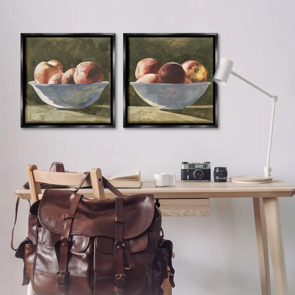 Elevate your home or office to the next level with Stupell Framed Floating Canvas Wall Art. Our premium hand-stretched canvas is mounted securely into a sturdy lightweight frame. The museum-style gap between the wrapped canvas and the box frame gives the illusion of floating artwork. Stupell Wall Art is made in the USA.Features: Dimensions: 2 Piece Set, Each Frame is 18 x 1.7 x 18Two Piece Floating Frame Canvas Products are available as 18"x18" or 25"x25" Panels. All Floating Frame Canvas Products have a 1.7" Depth.Wall Art is Ready to Hang with Hardware Free Hanging. No Installation required. For Easy Set Up Lean or Layer Artwork on Shelf or Against Wall. Artwork is Permently Fixed into the Frame.Our elevated 1.7" Thick Floating Frame is the perfect complement to our canvas style Wall Art. We use only the highest quality inks in house with industry leading printing solutions. Canvas is hand stretched over a durable wood foundation and then mounted securly into a Modern Box Frame. Made in the USA.Artwork Relates To: Painting, Food, Fruit, Plant, Produce, Bowl, Still Life, Apple, TraditionalDesign by Emma Caroline
