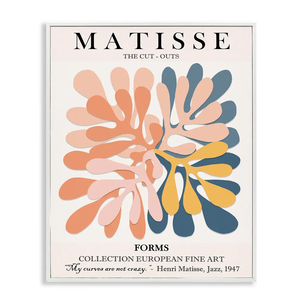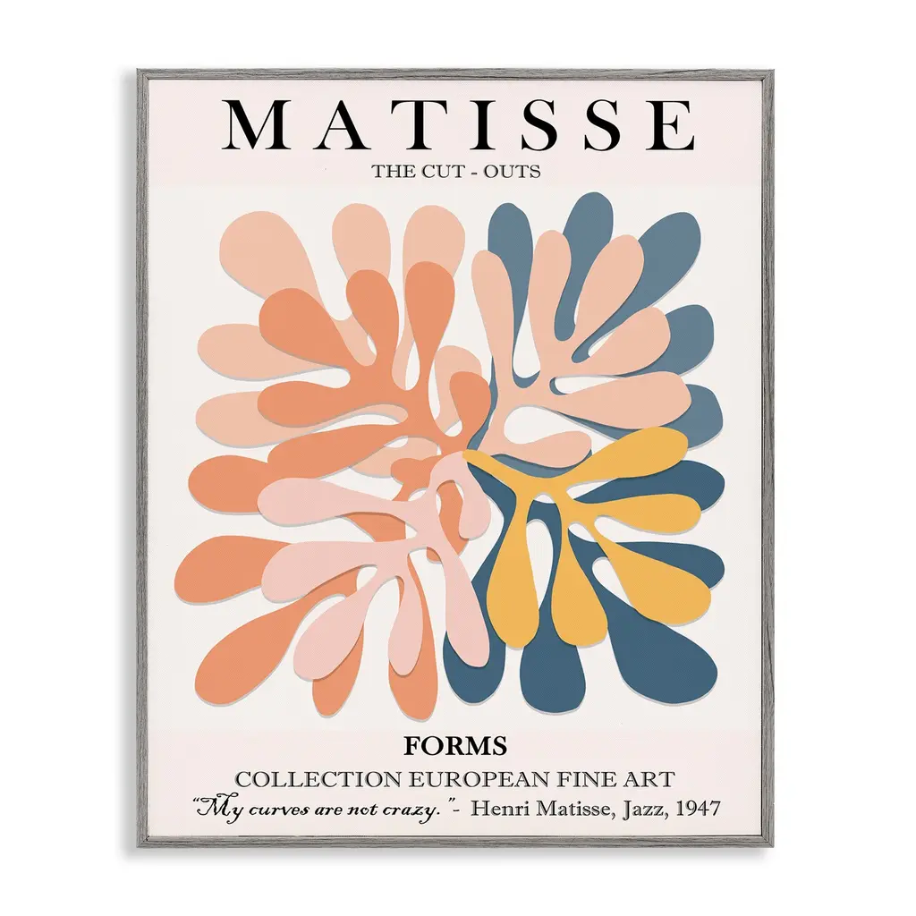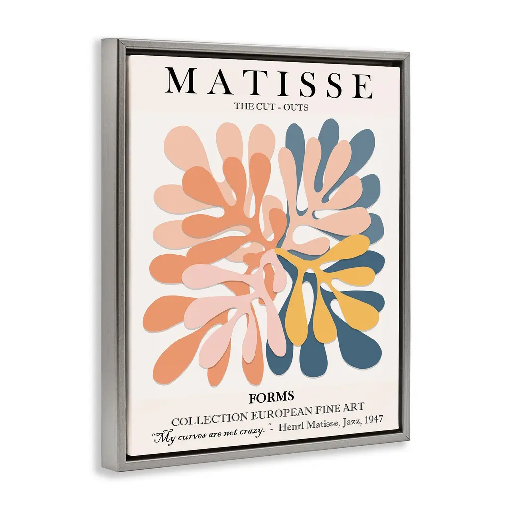 Stupell Classical Matisse Painting Cut Out Forms Traditional Abstract Floater Frame - Multi-Color - 17 X 21 - Grey