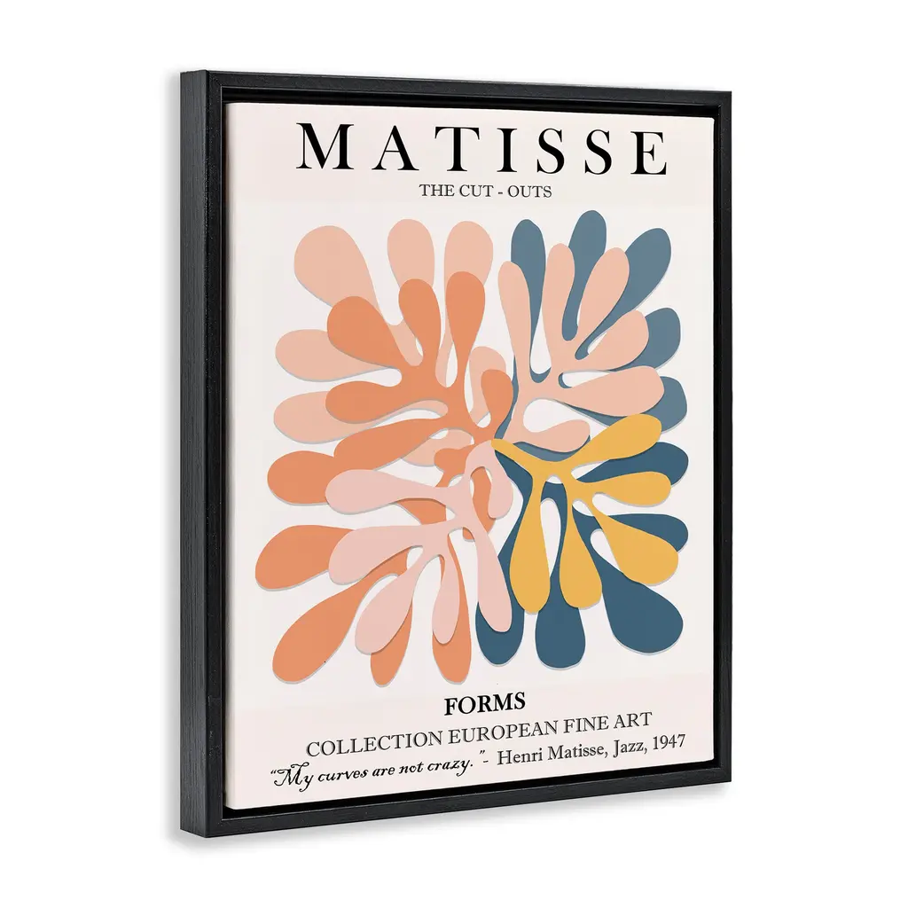 Stupell Classical Matisse Painting Cut Out Forms Traditional Abstract Floater Frame - Multi-Color - 25 X 31 - Black