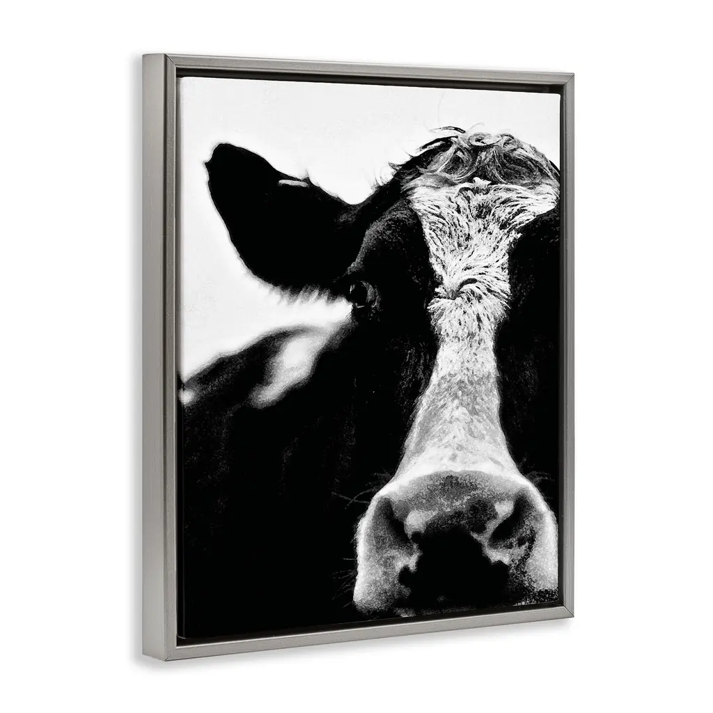 Stupell Cow Black And White Close Up Floater Frame - 17 X 21 - Grey
