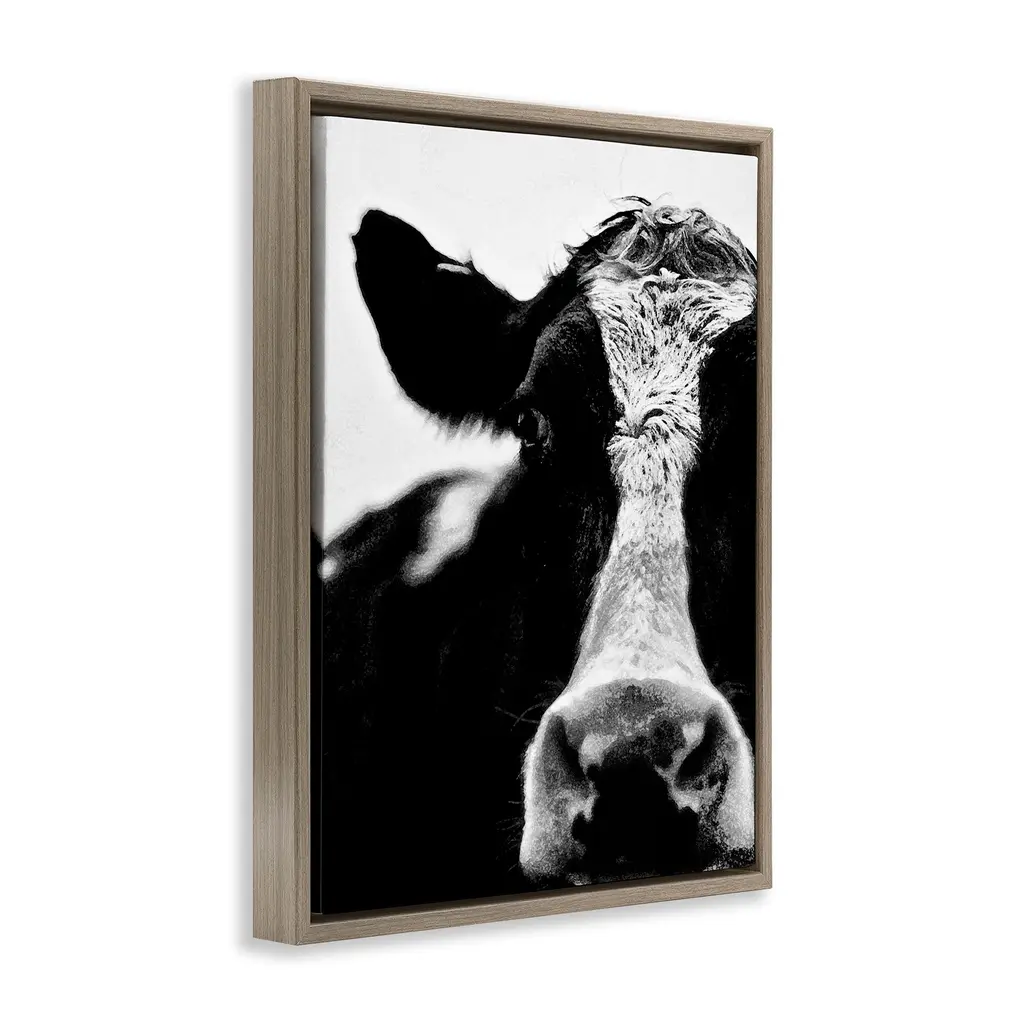 Stupell Cow Black And White Close Up Floater Frame - 25 X 31 - Brown