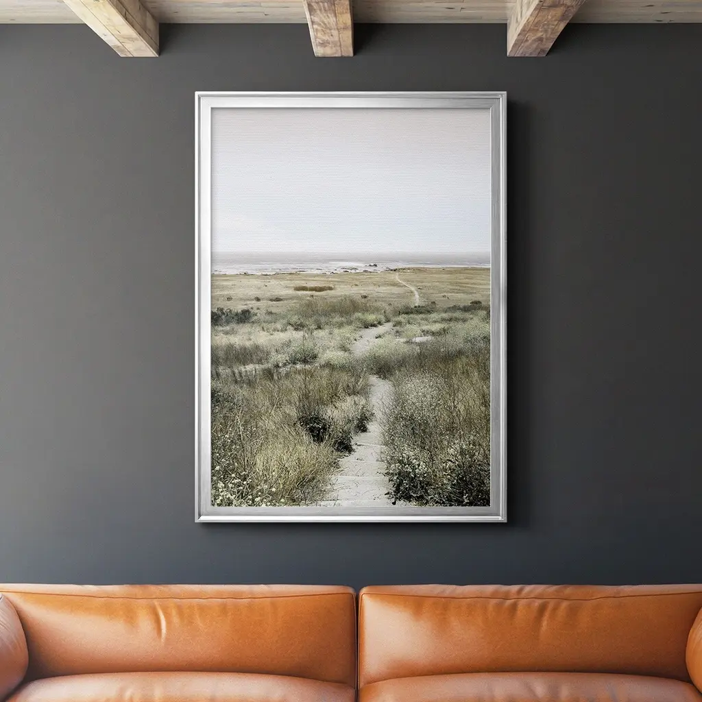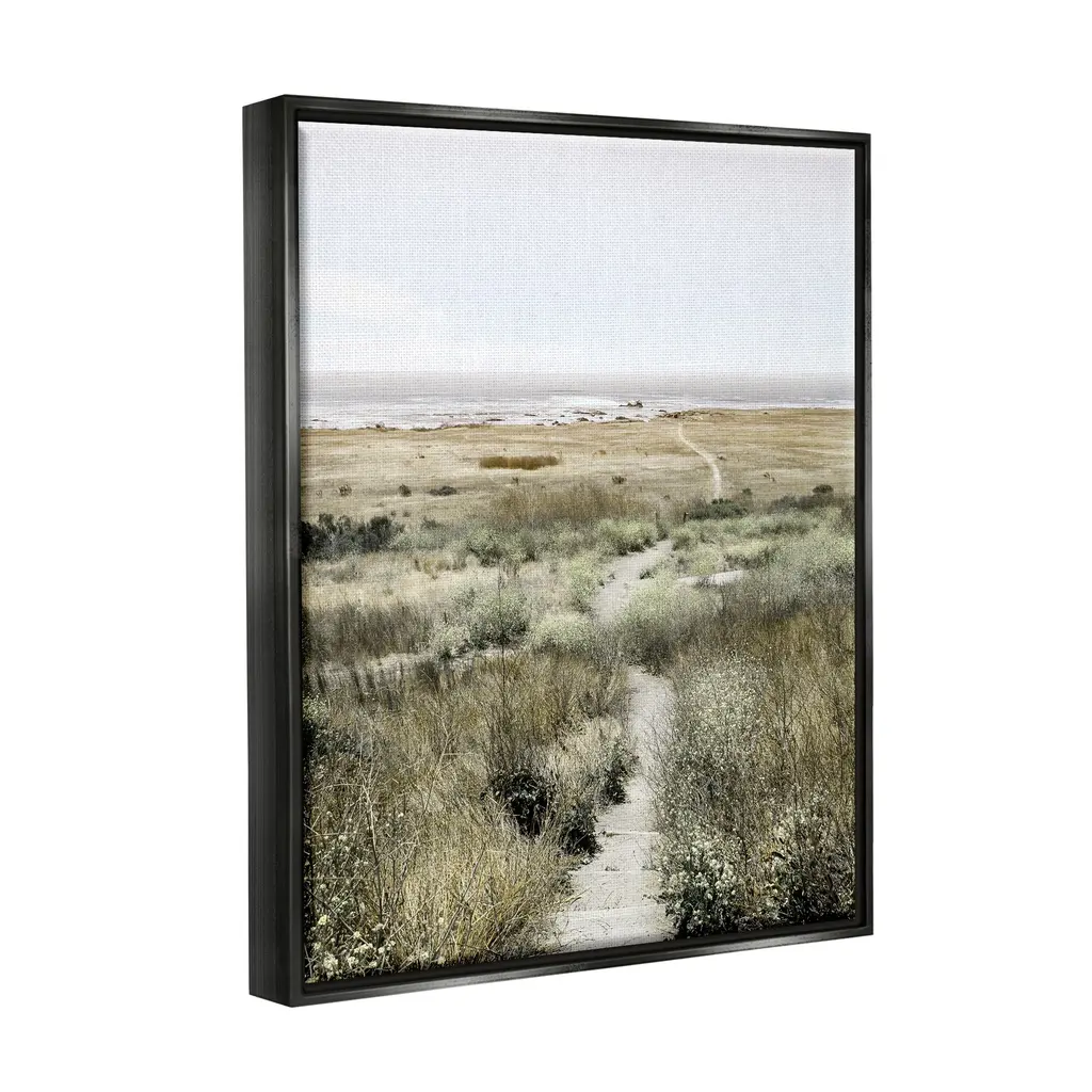 Stupell Distant Shoreline Grassy Beach Path Cloudy Horizon Floater Frame - Green - 16 X 20 - Black