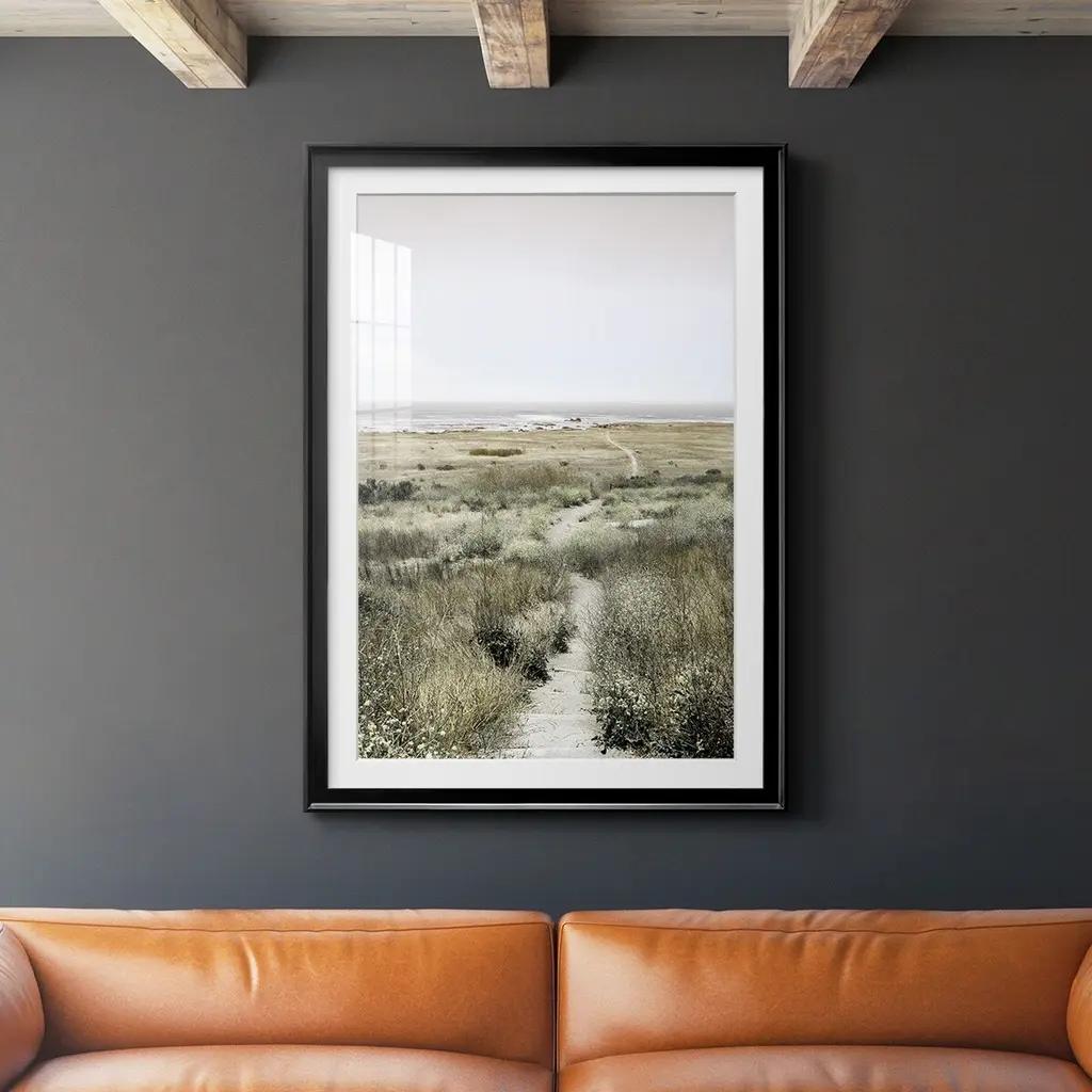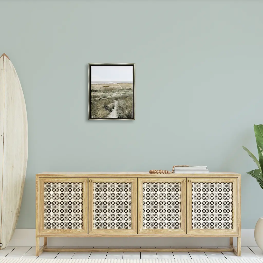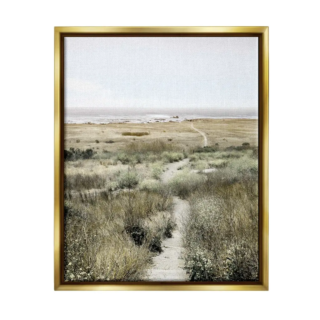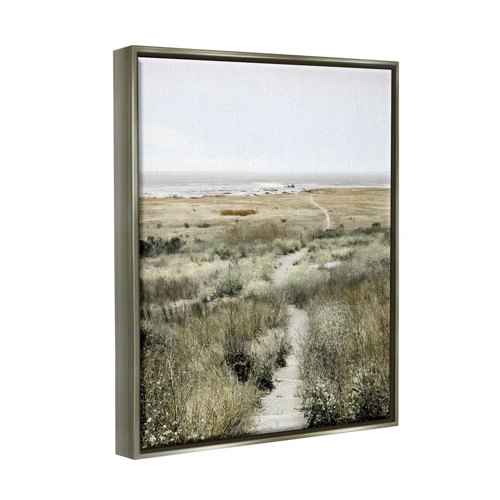Stupell Distant Shoreline Grassy Beach Path Cloudy Horizon Floater Frame - Green - 16 X 20 - Grey