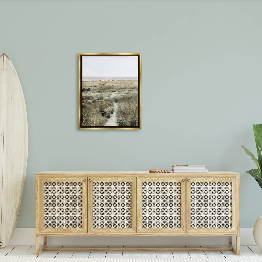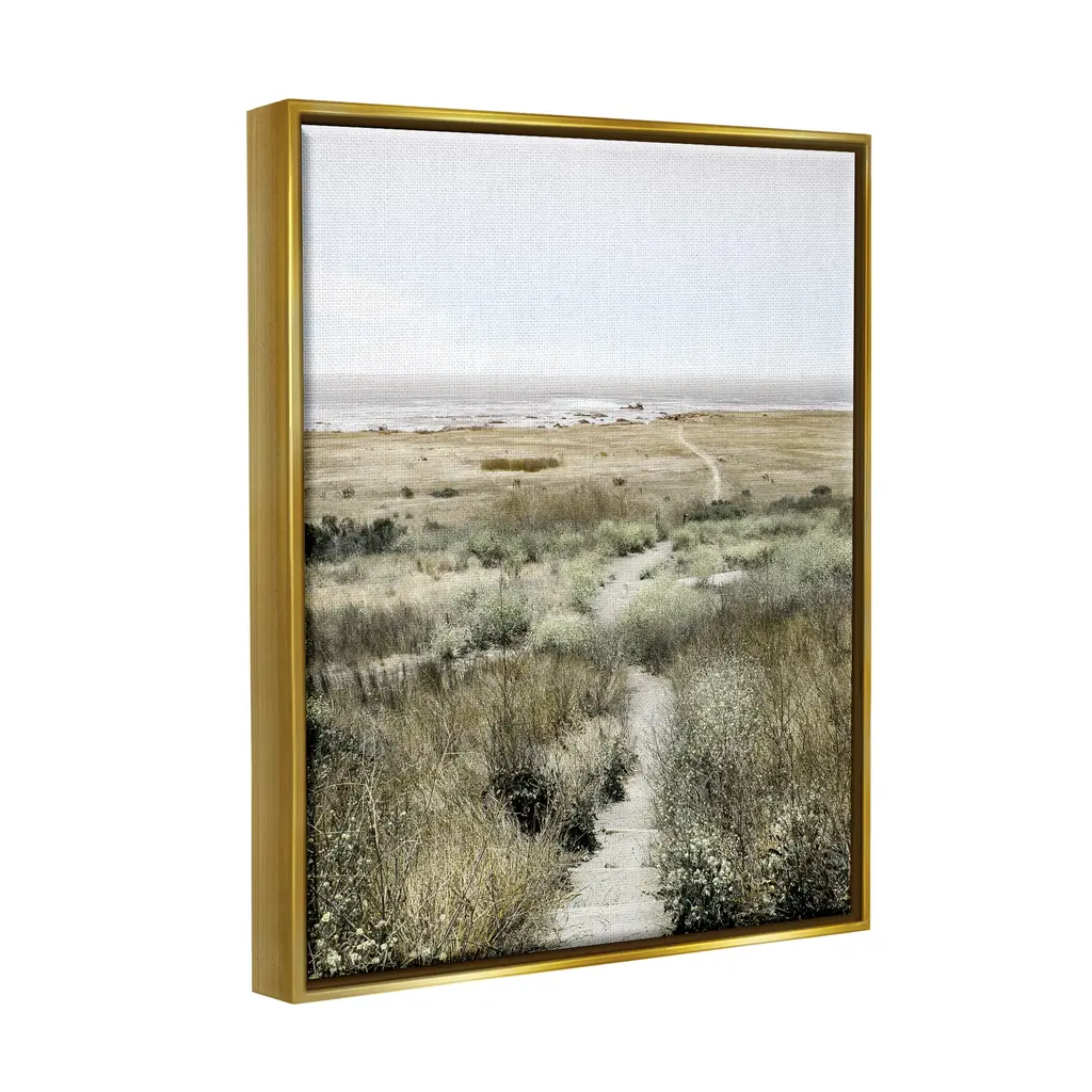 Stupell Distant Shoreline Grassy Beach Path Cloudy Horizon Floater Frame - Green - 24 X 30 - Gold