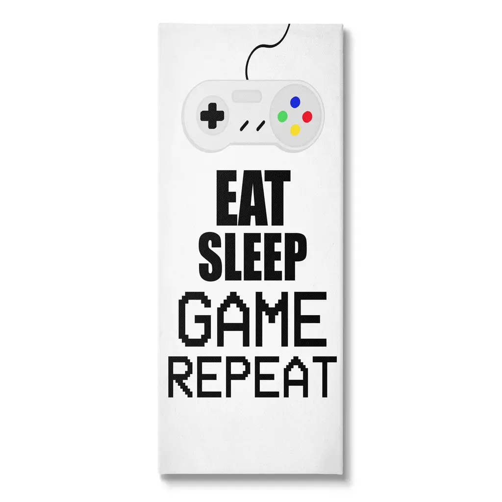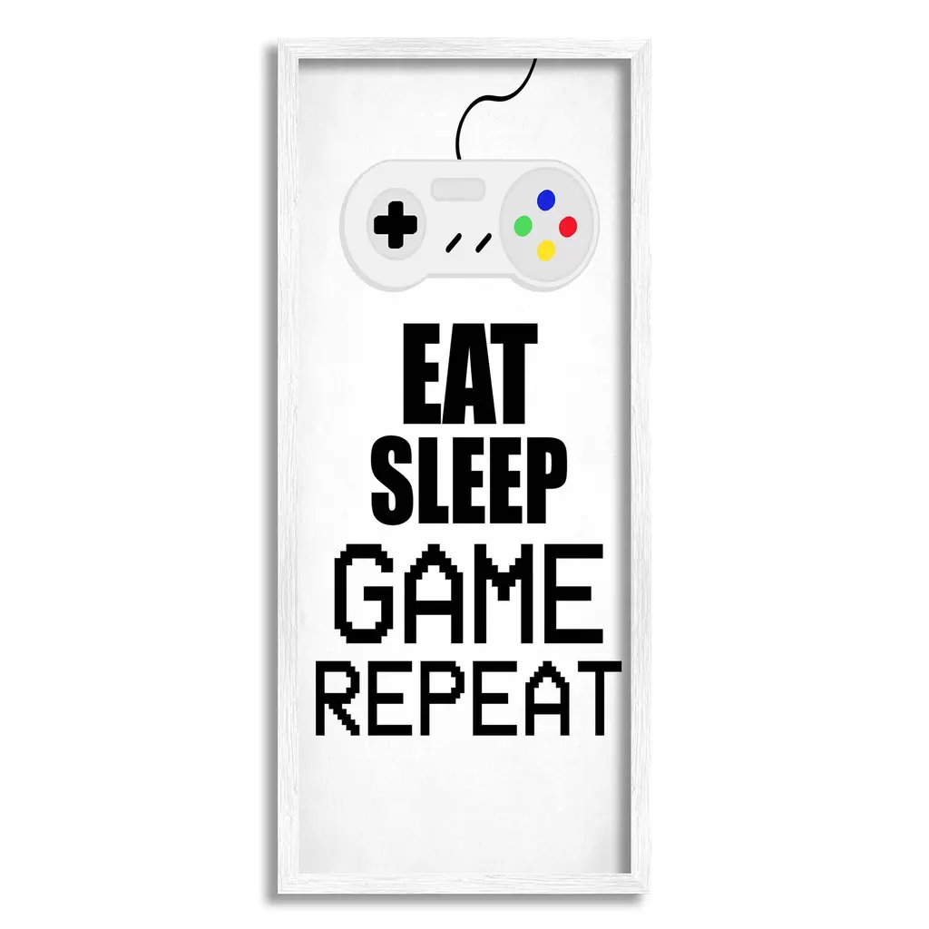 Stupell Eat Sleep Game Repeat Pixel Typography Vintage Controller Framed Wall Art - Blue - 10 X 24 - Grey