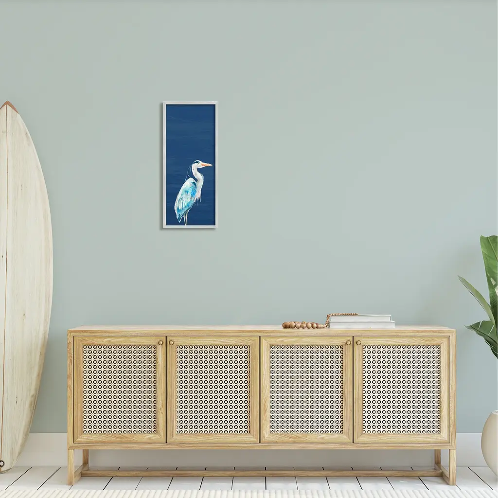 Stupell Egret Sea Bird Standing Deep Blue Ocean Background Framed Wall Art - 10 X 24 - Grey
